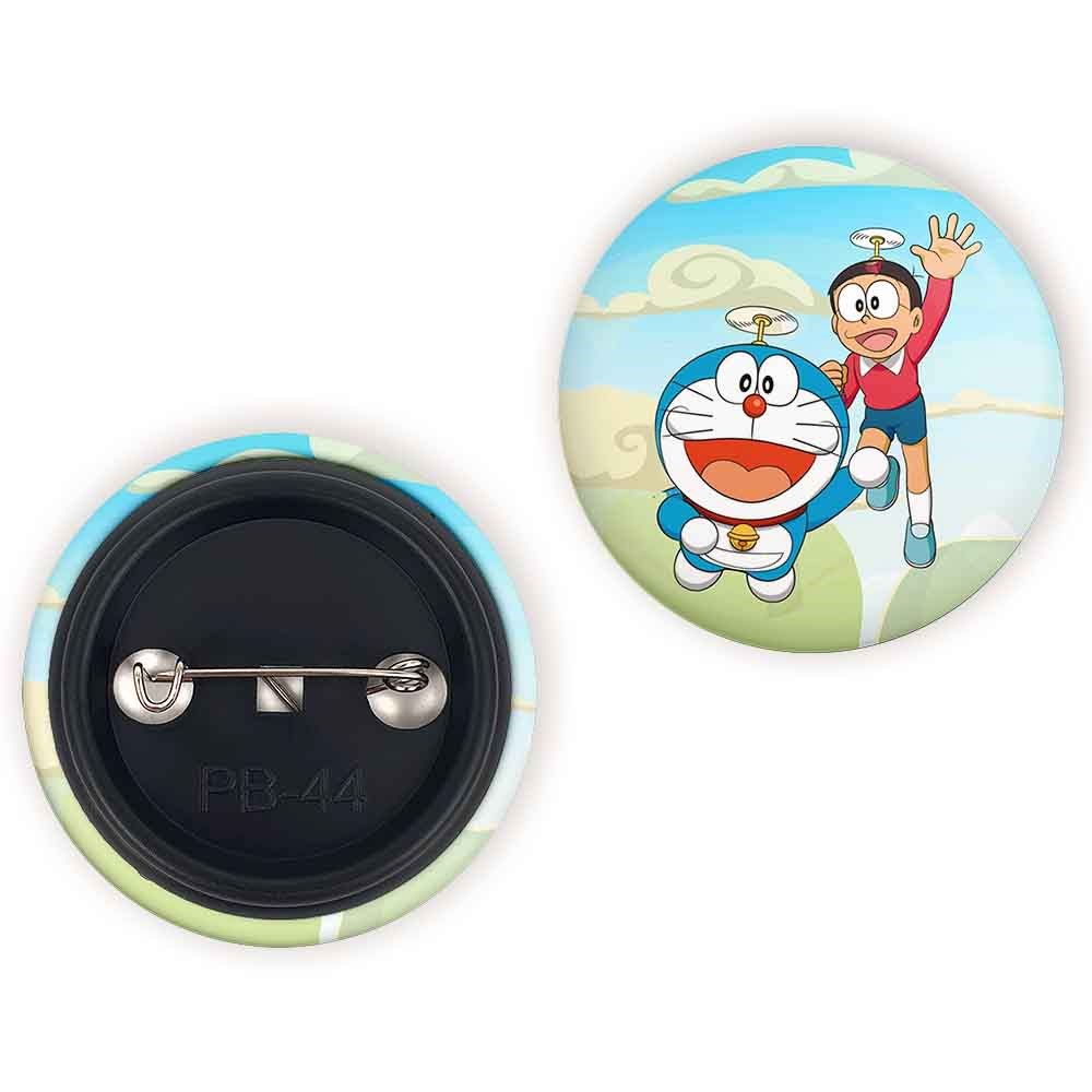 پیکسل 44 میلی متری دورایمون و نوبیتا انیمه دورایمون خندالو با روکش سلفون حرارتی مات مخملی ضدخش و قطعه پشتی رنگی تولید شده است.پلاستیکی پشت پیکسل با سوزن یک تکه ثابت و بدون لغزش و جا به جایی، ایستایی بسیار بهتری نسبت به پشتی فلزی پیکسل دارند که این مهم در تولید این محصول نیز رعایت شده است.