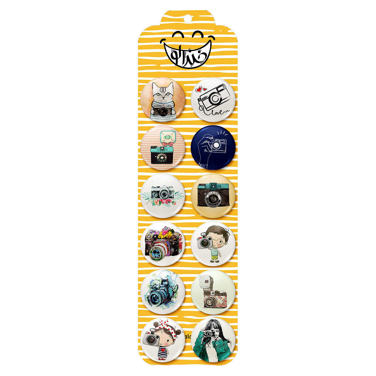پک 12 عددی پیکسل خندالو طرح دوربین (Camera) با روکش سلفون حرارتی براق ضدخش و قطعه پشتی رنگی تولید شده است. قطعات پشتی از میان 6 رنگ سفید، مشکی، صورتی، زرد، آبی و قرمز که با توجه به نوع و رنگبندی طرح روی پیکسل انتخاب شده اند تولید می شود و در هر بسته بندی مطابق عکس محصول می باشد. قطعات پلاستیکی پشت پیکسل با سوزن یک تکه ثابت و بدون لغزش و جا به جایی، ایستایی بسیار بهتری نسبت به پشتی فلزی پیکسل دارند که این مهم در تولید این محصول نیز رعایت شده است.