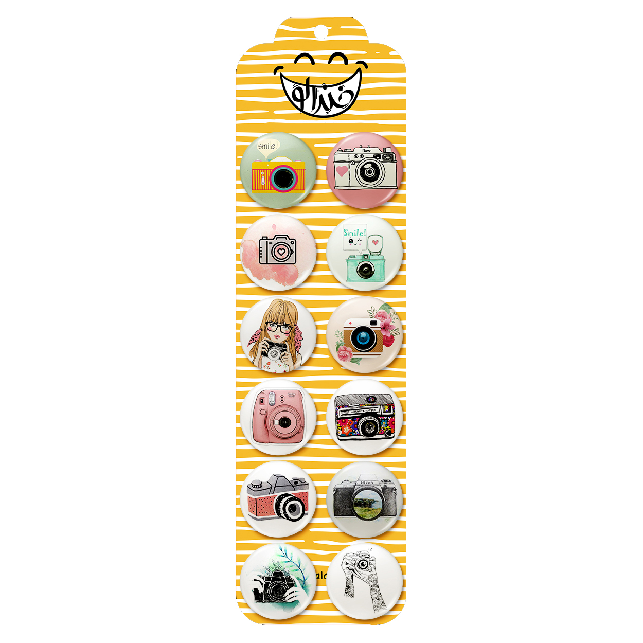 پک 12 عددی پیکسل خندالو طرح دوربین (Camera) با روکش سلفون حرارتی براق ضدخش و قطعه پشتی رنگی تولید شده است. قطعات پشتی از میان 6 رنگ سفید، مشکی، صورتی، زرد، آبی و قرمز که با توجه به نوع و رنگبندی طرح روی پیکسل انتخاب شده اند تولید می شود و در هر بسته بندی مطابق عکس محصول می باشد. قطعات پلاستیکی پشت پیکسل با سوزن یک تکه ثابت و بدون لغزش و جا به جایی، ایستایی بسیار بهتری نسبت به پشتی فلزی پیکسل دارند که این مهم در تولید این محصول نیز رعایت شده است. چاپ پیکسل طرح دوربین (Camera) بسته ۱۲ عددی نیز با دستگاه های استاندارد و با بهترین سطح کیفی صورت گرفته و طرح با شفافیتی مثال زدنی و با سلفونی بدون شکست نور بر روی پیکسل نقش بسته است.