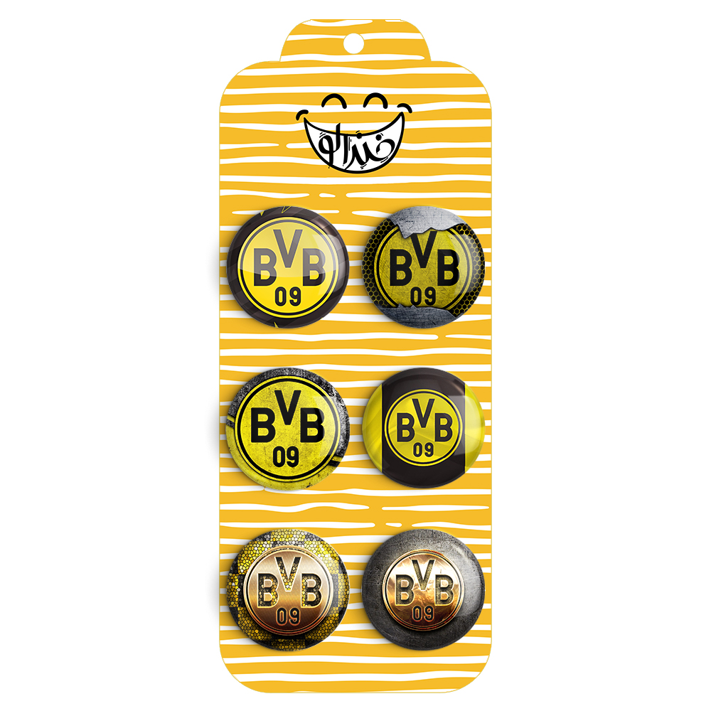 مجموعه 6 عددی پیکسل خندالو طرح دورتموند (Dortmund) با روکش سلفون حرارتی براق ضدخش و قطعه پشتی رنگی تولید شده است. قطعات پشتی از میان 6 رنگ سفید، مشکی، صورتی، زرد، آبی و قرمز که با توجه به نوع و رنگبندی طرح روی پیکسل انتخاب شده اند تولید می شود و در هر بسته بندی مطابق عکس محصول می باشد.
