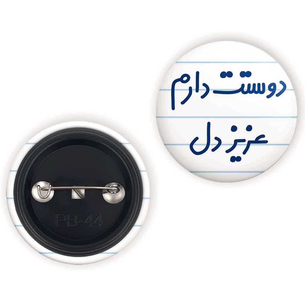 پیکسل 44 میلی متری دوستت دارم عزیزدل خندالو با روکش سلفون حرارتی مات مخملی ضدخش و قطعه پشتی رنگی تولید شده است.پلاستیکی پشت پیکسل با سوزن یک تکه ثابت و بدون لغزش و جا به جایی، ایستایی بسیار بهتری نسبت به پشتی فلزی پیکسل دارند که این مهم در تولید این محصول نیز رعایت شده است.