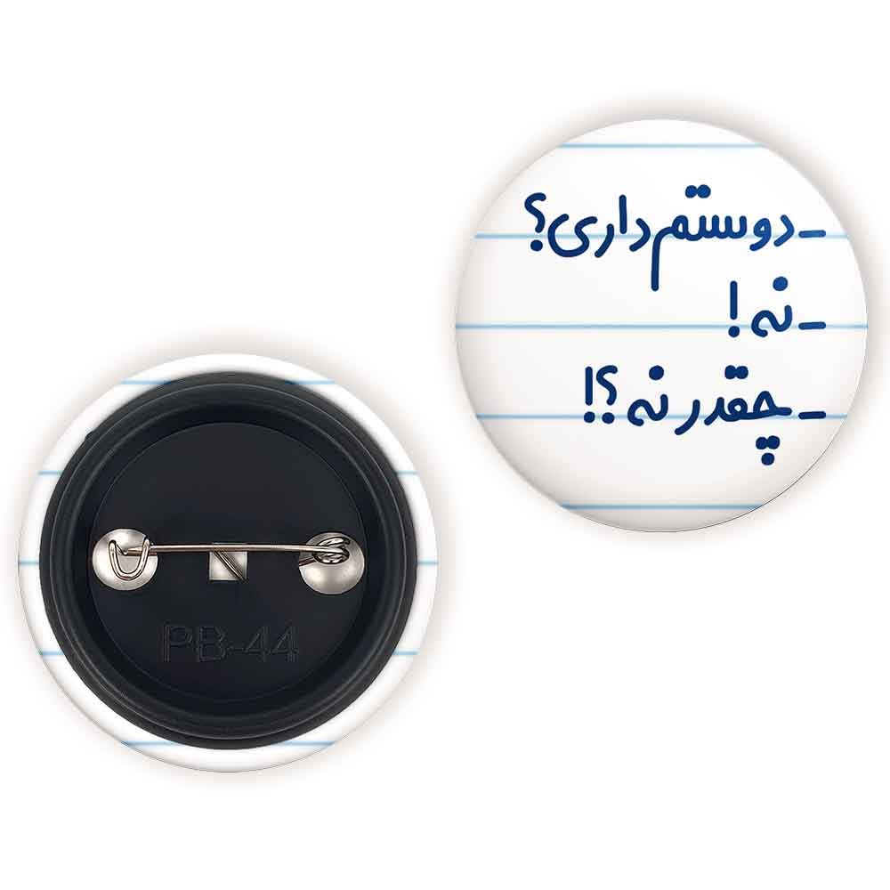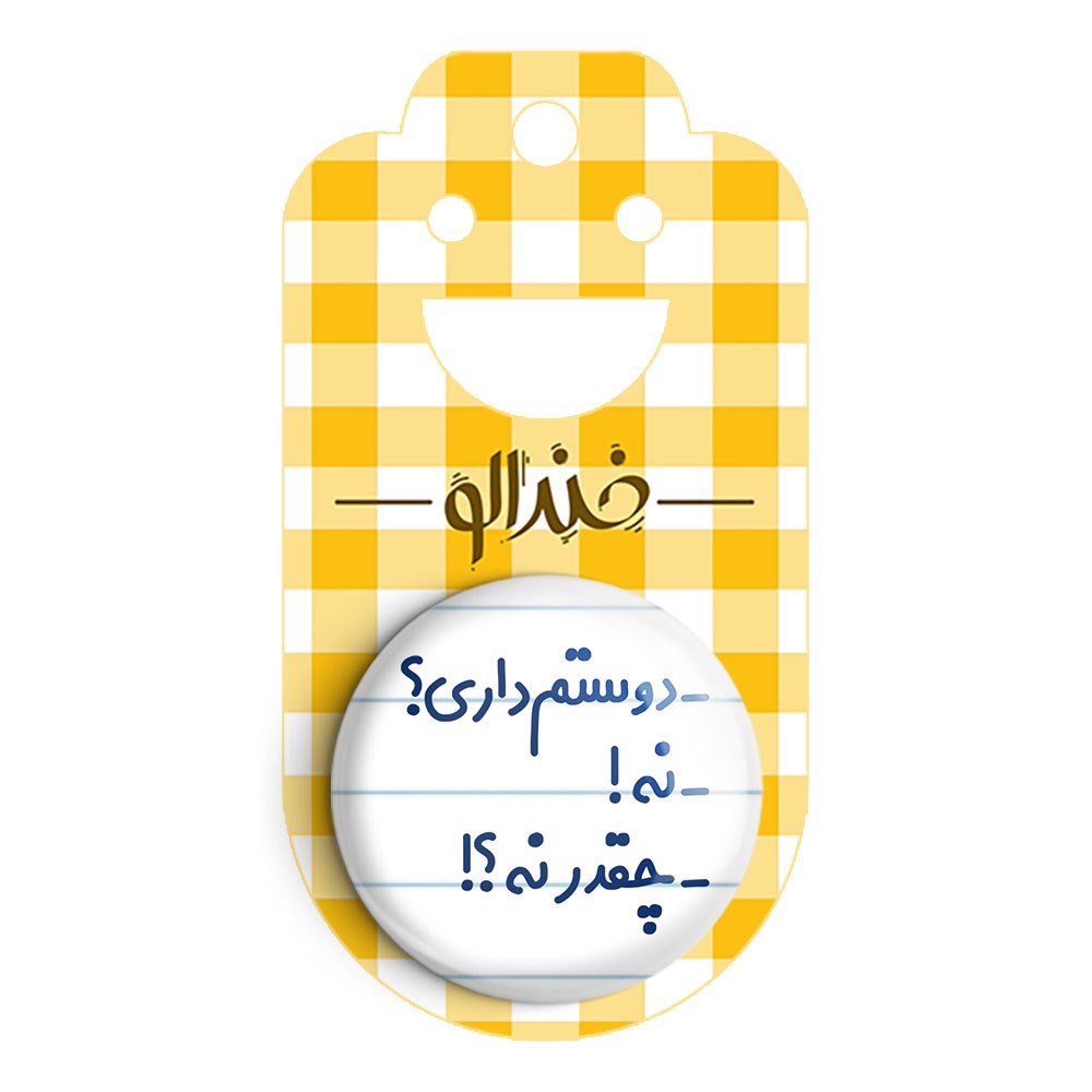 پیکسل 44 میلی متری دوستم داری؟ نه! چقدر نه؟! خندالو با روکش سلفون حرارتی مات مخملی ضدخش و قطعه پشتی رنگی تولید شده است. قطعات پلاستیکی پشت پیکسل با سوزن یک تکه ثابت و بدون لغزش و جا به جایی، ایستایی بسیار بهتری نسبت به پشتی فلزی پیکسل دارند که این مهم در تولید این محصول نیز رعایت شده است. چاپ پیکسل دوستم داری؟ نه! چقدر نه؟! نیز با دستگاه های استاندارد و با بهترین سطح کیفی صورت گرفته و طرح با شفافیتی مثال زدنی و با سلفونی بدون شکست نور بر روی پیکسل نقش بسته است. همچنین بسته بندی جذاب و مینیمال پیکسل دوستم داری؟ نه! چقدر نه؟! ، آنها را مناسب هدیه کرده است.