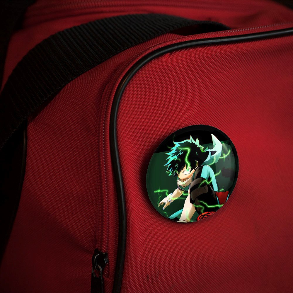پیکسل 44 میلی متری دکو انیمه آکادمی قهرمان من خندالو با روکش سلفون حرارتی مات مخملی ضدخش و قطعه پشتی رنگی تولید شده است.پلاستیکی پشت پیکسل با سوزن یک تکه ثابت و بدون لغزش و جا به جایی، ایستایی بسیار بهتری نسبت به پشتی فلزی پیکسل دارند که این مهم در تولید این محصول نیز رعایت شده است.