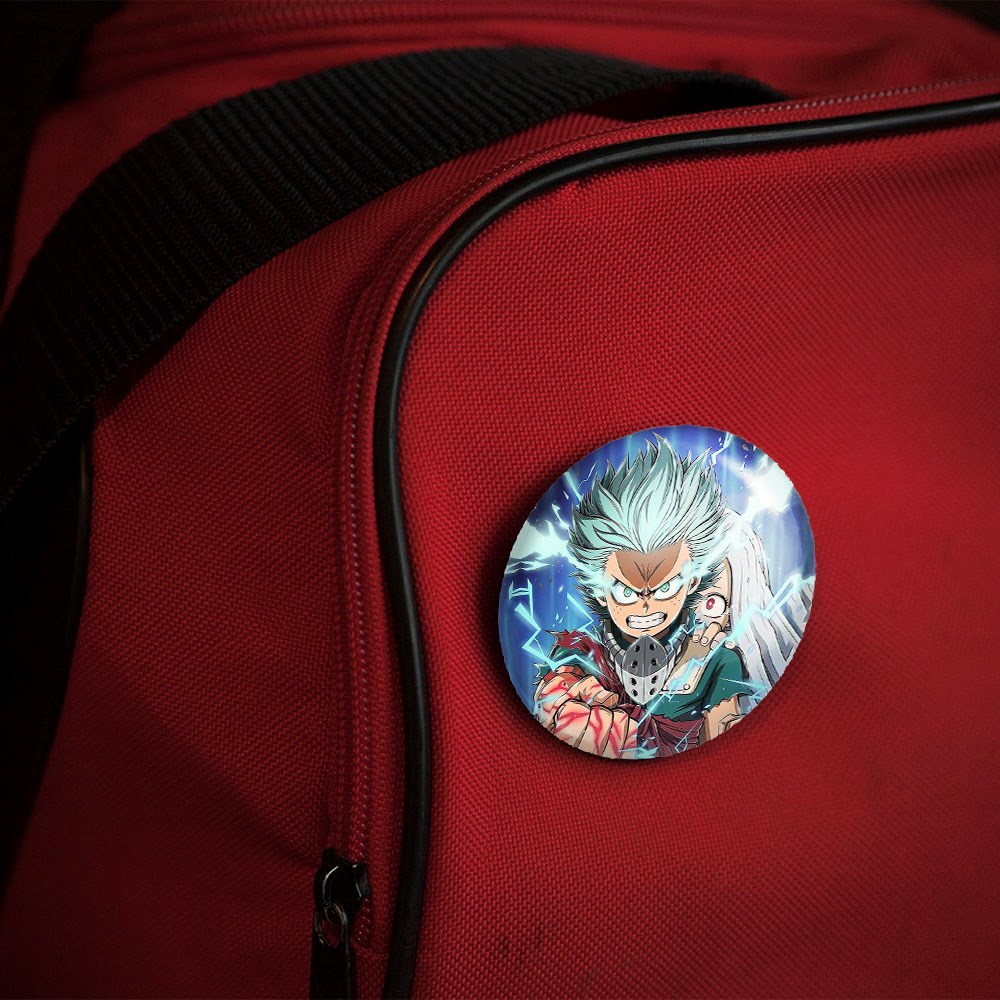 پیکسل 44 میلی متری دکو انیمه آکادمی قهرمان من خندالو با روکش سلفون حرارتی مات مخملی ضدخش و قطعه پشتی رنگی تولید شده است.پلاستیکی پشت پیکسل با سوزن یک تکه ثابت و بدون لغزش و جا به جایی، ایستایی بسیار بهتری نسبت به پشتی فلزی پیکسل دارند که این مهم در تولید این محصول نیز رعایت شده است.