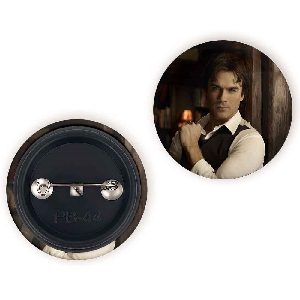 پیکسل 44 میلی متری دیمون خاطرات یک خون آشام The Vampire Diaries خندالو با روکش سلفون حرارتی مات مخملی ضدخش و قطعه پشتی رنگی تولید شده است.پلاستیکی پشت پیکسل با سوزن یک تکه ثابت و بدون لغزش و جا به جایی، ایستایی بسیار بهتری نسبت به پشتی فلزی پیکسل دارند که این مهم در تولید این محصول نیز رعایت شده است.