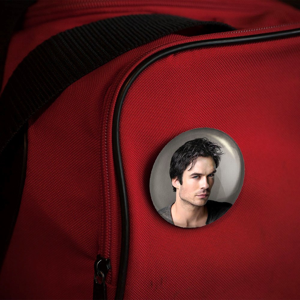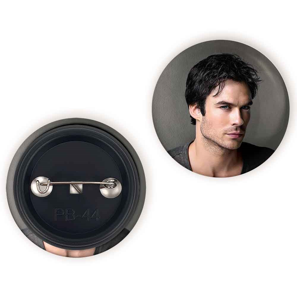 پیکسل 44 میلی متری دیمون سالواتوره خاطرات یک خون آشام The Vampire Diaries خندالو با روکش سلفون حرارتی مات مخملی ضدخش و قطعه پشتی رنگی تولید شده است.پلاستیکی پشت پیکسل با سوزن یک تکه ثابت و بدون لغزش و جا به جایی، ایستایی بسیار بهتری نسبت به پشتی فلزی پیکسل دارند که این مهم در تولید این محصول نیز رعایت شده است.