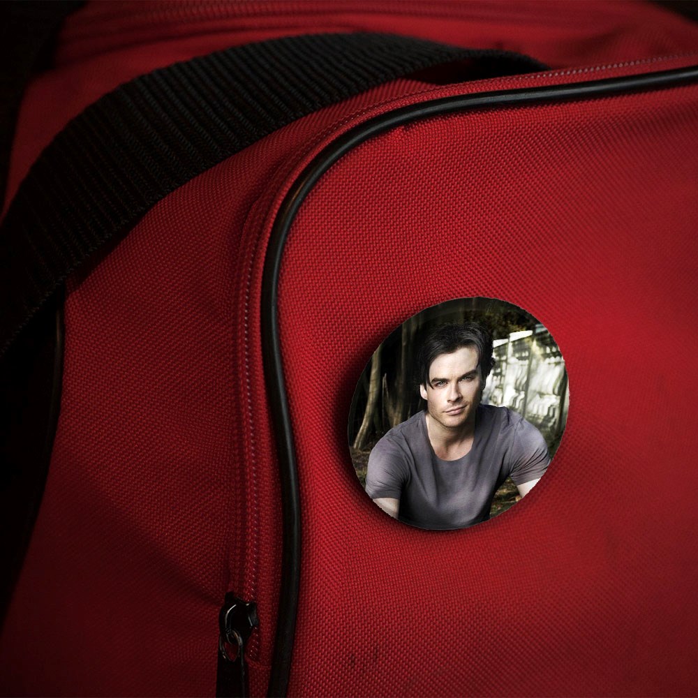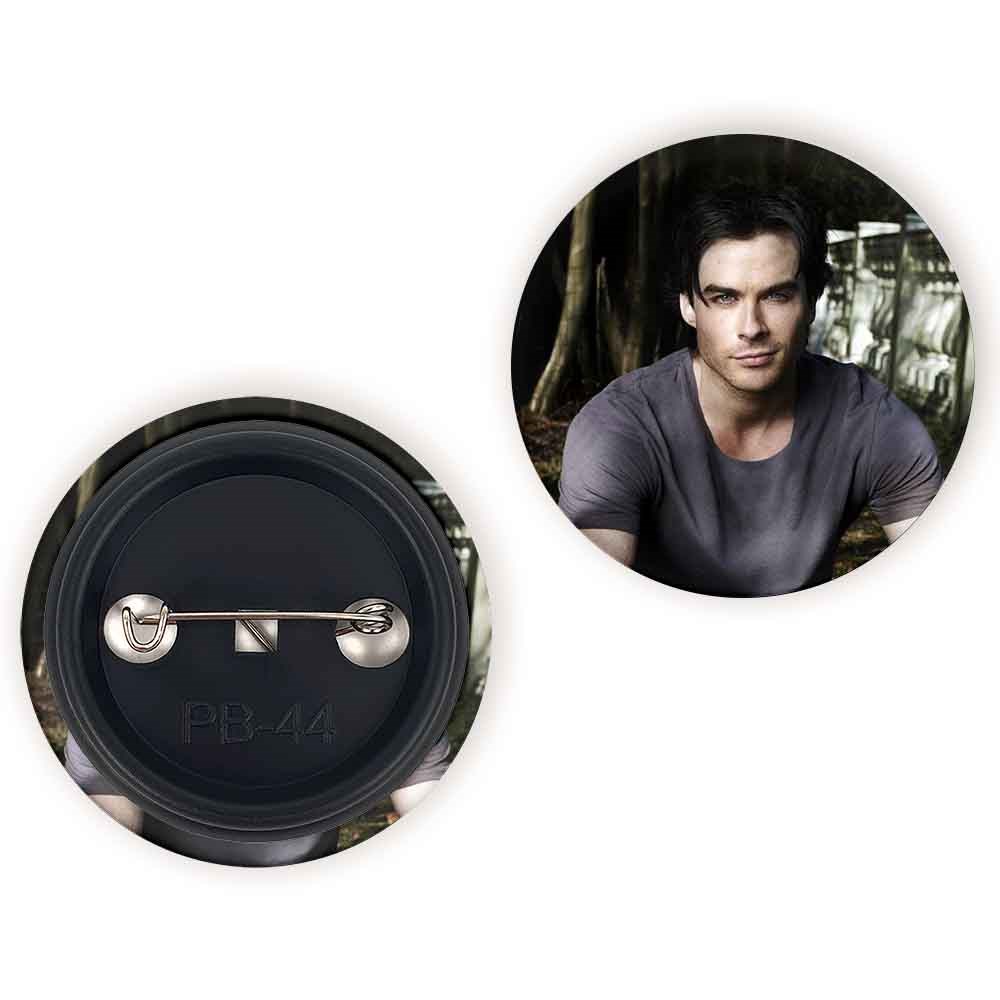 پیکسل 44 میلی متری دیمون سالواتوره خاطرات یک خون آشام The Vampire Diaries خندالو با روکش سلفون حرارتی مات مخملی ضدخش و قطعه پشتی رنگی تولید شده است.پلاستیکی پشت پیکسل با سوزن یک تکه ثابت و بدون لغزش و جا به جایی، ایستایی بسیار بهتری نسبت به پشتی فلزی پیکسل دارند که این مهم در تولید این محصول نیز رعایت شده است.