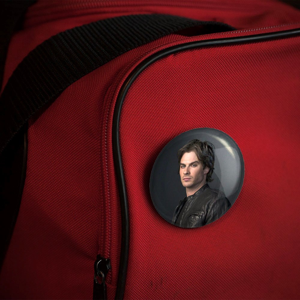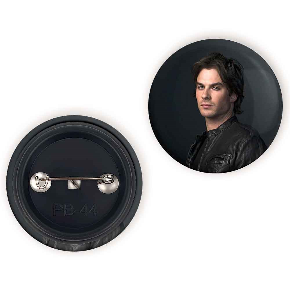پیکسل 44 میلی متری دیمون سالواتوره خاطرات یک خون آشام The Vampire Diaries خندالو با روکش سلفون حرارتی مات مخملی ضدخش و قطعه پشتی رنگی تولید شده است.پلاستیکی پشت پیکسل با سوزن یک تکه ثابت و بدون لغزش و جا به جایی، ایستایی بسیار بهتری نسبت به پشتی فلزی پیکسل دارند که این مهم در تولید این محصول نیز رعایت شده است.