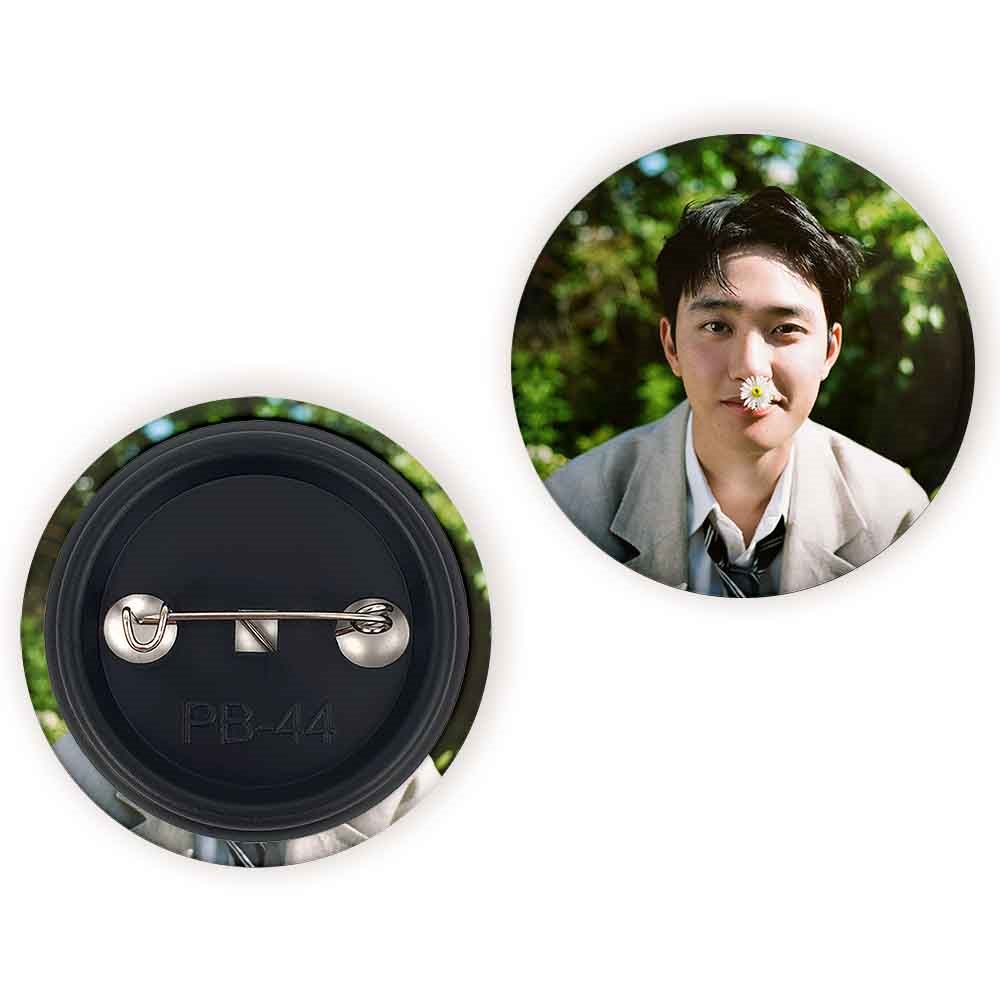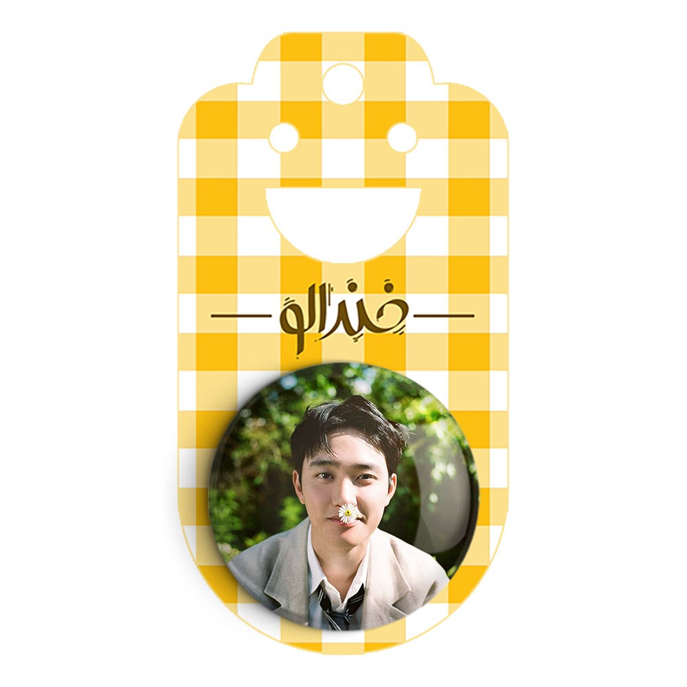 پیکسل 44 میلی متری دی او گروه اکسو EXO خندالو با روکش سلفون حرارتی مات مخملی ضدخش و قطعه پشتی رنگی تولید شده است.پلاستیکی پشت پیکسل با سوزن یک تکه ثابت و بدون لغزش و جا به جایی، ایستایی بسیار بهتری نسبت به پشتی فلزی پیکسل دارند که این مهم در تولید این محصول نیز رعایت شده است.