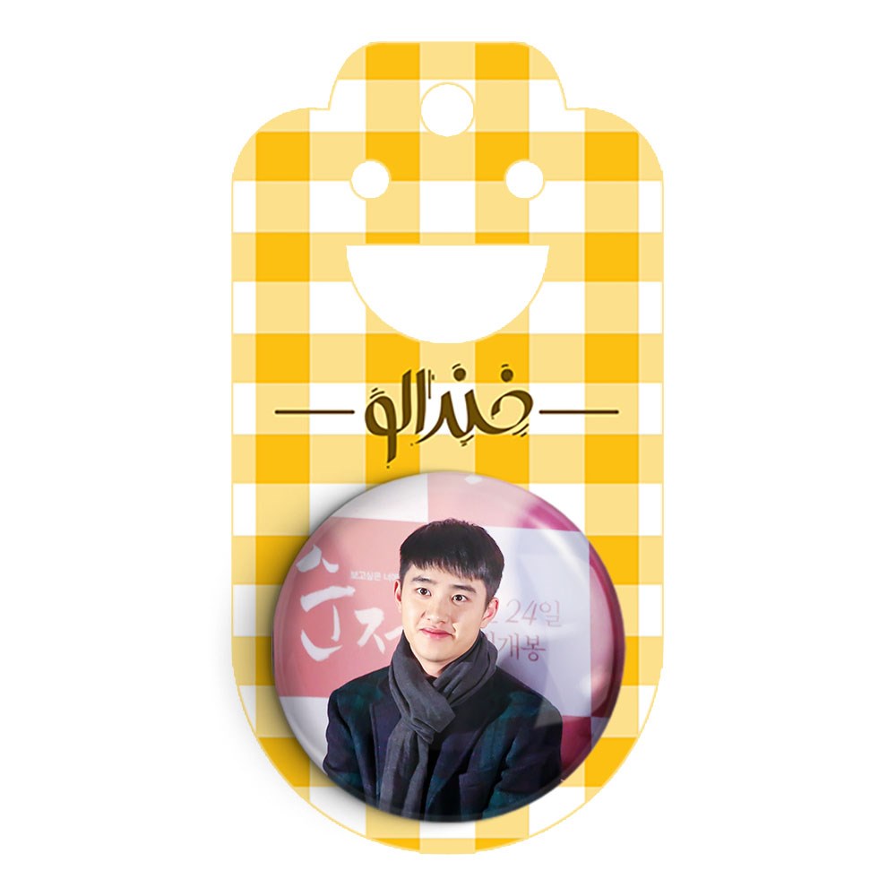 پیکسل 44 میلی متری دی او گروه اکسو EXO خندالو با روکش سلفون حرارتی مات مخملی ضدخش و قطعه پشتی رنگی تولید شده است.پلاستیکی پشت پیکسل با سوزن یک تکه ثابت و بدون لغزش و جا به جایی، ایستایی بسیار بهتری نسبت به پشتی فلزی پیکسل دارند که این مهم در تولید این محصول نیز رعایت شده است.