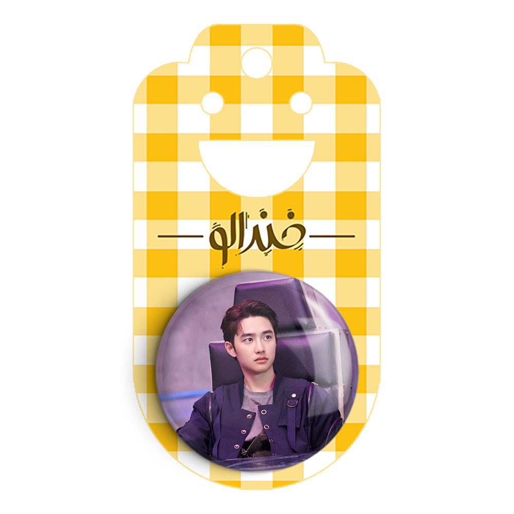 پیکسل 44 میلی متری دی او گروه اکسو EXO خندالو با روکش سلفون حرارتی مات مخملی ضدخش و قطعه پشتی رنگی تولید شده است.پلاستیکی پشت پیکسل با سوزن یک تکه ثابت و بدون لغزش و جا به جایی، ایستایی بسیار بهتری نسبت به پشتی فلزی پیکسل دارند که این مهم در تولید این محصول نیز رعایت شده است.