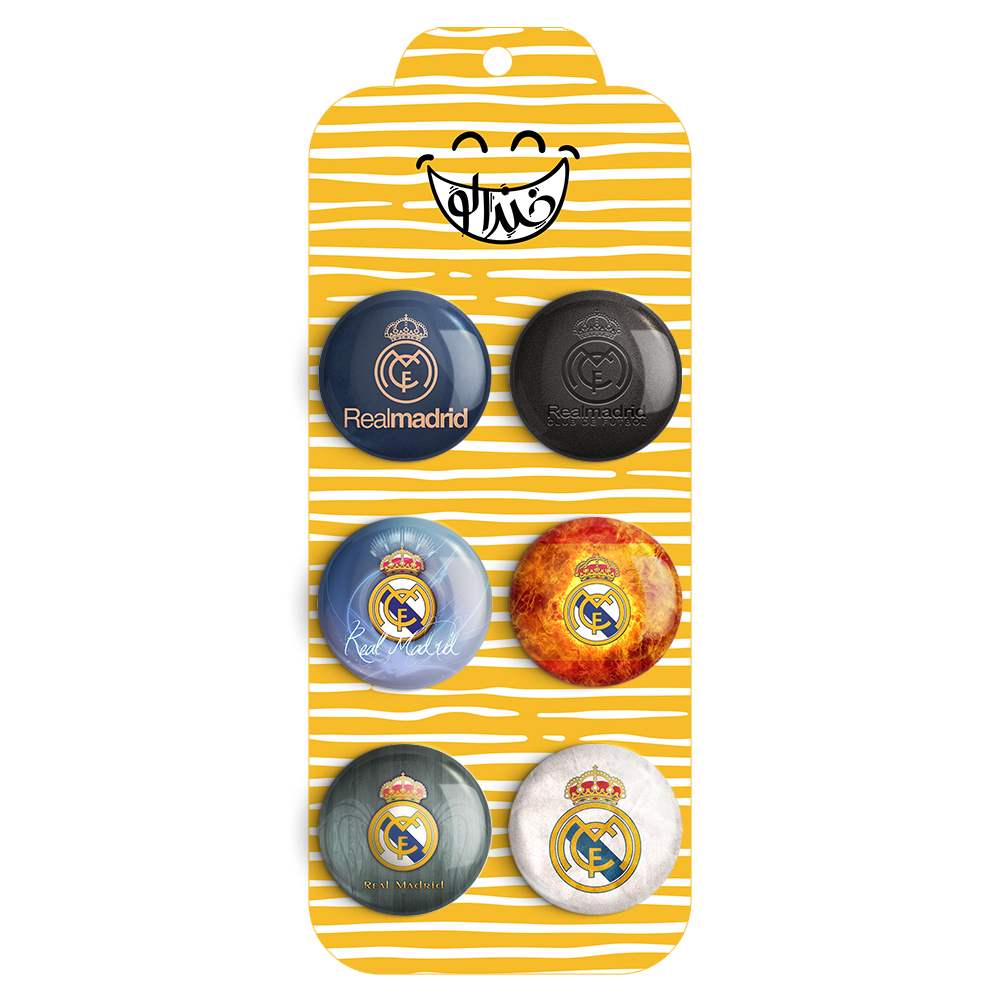 مجموعه 6 عددی پیکسل خندالو طرح رئال مادرید (Real Madrid) با روکش سلفون حرارتی براق ضدخش و قطعه پشتی رنگی تولید شده است. قطعات پشتی از میان 6 رنگ سفید، مشکی، صورتی، زرد، آبی و قرمز که با توجه به نوع و رنگبندی طرح روی پیکسل انتخاب شده اند تولید می شود و در هر بسته بندی مطابق عکس محصول می باشد.