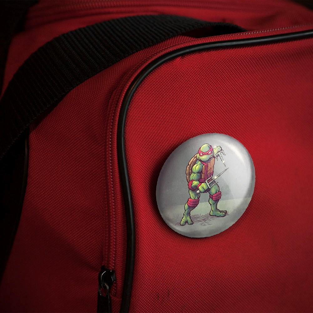 پیکسل 44 میلی متری رافائل لاکپشت های نینجا خندالو با روکش سلفون حرارتی مات مخملی ضدخش و قطعه پشتی رنگی تولید شده است.پلاستیکی پشت پیکسل با سوزن یک تکه ثابت و بدون لغزش و جا به جایی، ایستایی بسیار بهتری نسبت به پشتی فلزی پیکسل دارند که این مهم در تولید این محصول نیز رعایت شده است.
