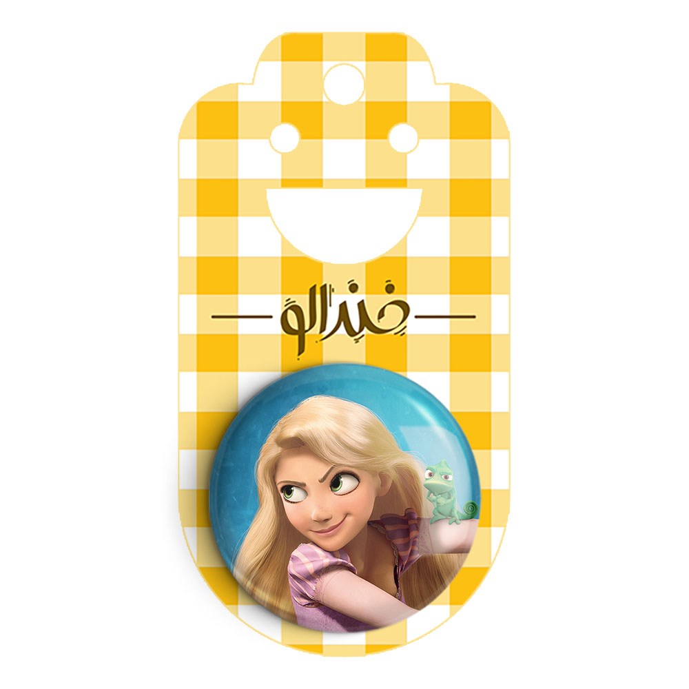 پیکسل 44 میلی متری راپونزل گیسو کمند Rapunzel خندالو با روکش سلفون حرارتی مات مخملی ضدخش و قطعه پشتی رنگی تولید شده است.پلاستیکی پشت پیکسل با سوزن یک تکه ثابت و بدون لغزش و جا به جایی، ایستایی بسیار بهتری نسبت به پشتی فلزی پیکسل دارند که این مهم در تولید این محصول نیز رعایت شده است.