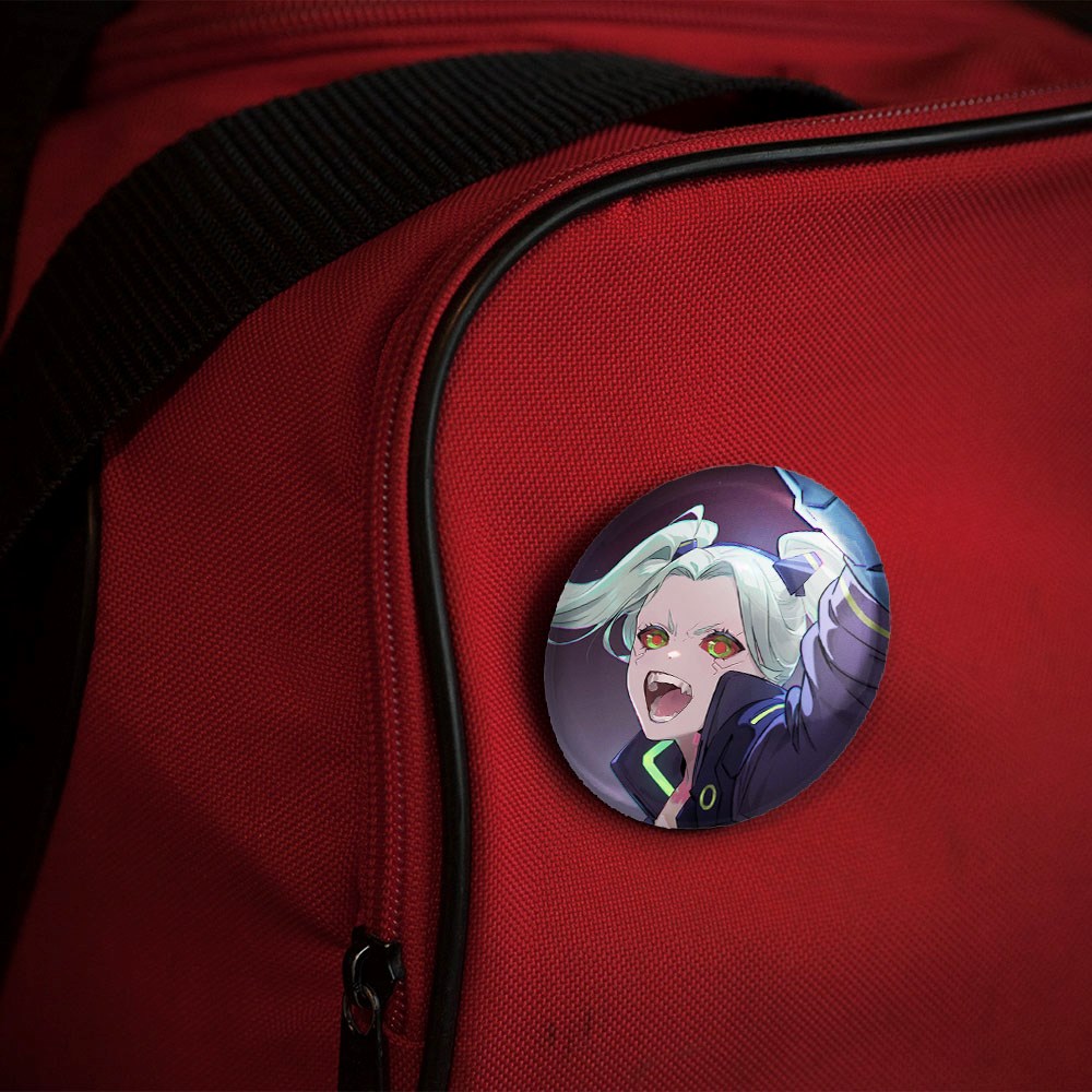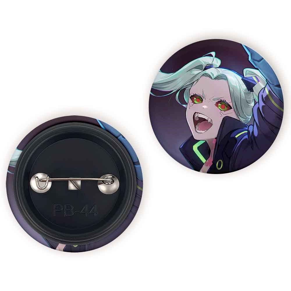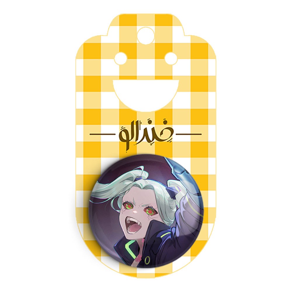 پیکسل 44 میلی متری ربکا انیمه سایبر پانک Cyberpunk خندالو با روکش سلفون حرارتی مات مخملی ضدخش و قطعه پشتی رنگی تولید شده است.پلاستیکی پشت پیکسل با سوزن یک تکه ثابت و بدون لغزش و جا به جایی، ایستایی بسیار بهتری نسبت به پشتی فلزی پیکسل دارند که این مهم در تولید این محصول نیز رعایت شده است.