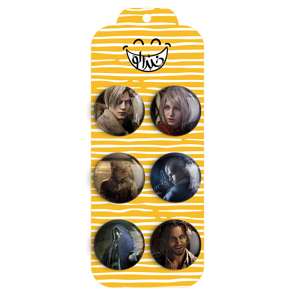 مجموعه 6 عددی پیکسل خندالو طرح رزیدنت اویل (Resident Evil) با روکش سلفون حرارتی براق ضدخش و قطعه پشتی رنگی تولید شده است. قطعات پشتی از میان 6 رنگ سفید، مشکی، صورتی، زرد، آبی و قرمز که با توجه به نوع و رنگبندی طرح روی پیکسل انتخاب شده اند تولید می شود و در هر بسته بندی مطابق عکس محصول می باشد. قطعات پلاستیکی پشت پیکسل با سوزن یک تکه ثابت و بدون لغزش و جا به جایی، ایستایی بسیار بهتری نسبت به پشتی فلزی پیکسل دارند که این مهم در تولید این محصول نیز رعایت شده است. چاپ پیکسل نیز با دستگاه های استاندارد و با بهترین سطح کیفی صورت گرفته و طرح با شفافیتی مثال زدنی و با سلفونی بدون شکست نور بر روی پیکسل نقش بسته است. همچنین بسته بندی جذاب و مینیمال پیکسل ها، آنها را مناسب هدیه کرده است..