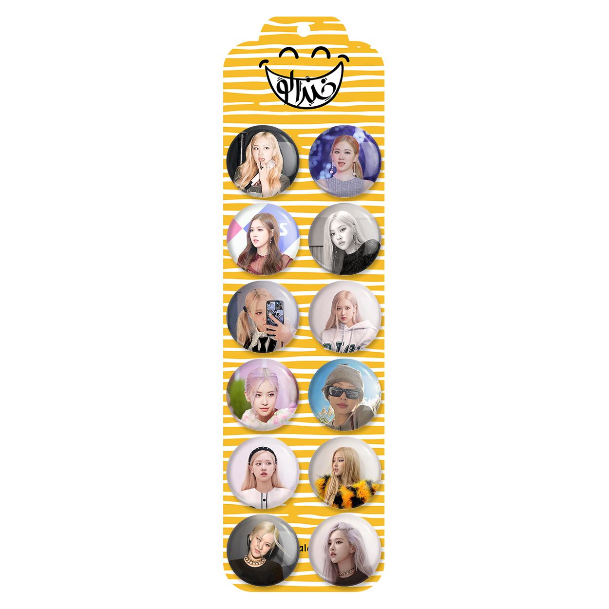 پک 12 عددی پیکسل خندالو طرح رزی بلک پینک Black pink با روکش سلفون حرارتی براق ضدخش و قطعه پشتی رنگی تولید شده است. قطعات پشتی از میان 6 رنگ سفید، مشکی، صورتی، زرد، آبی و قرمز که با توجه به نوع و رنگبندی طرح روی پیکسل انتخاب شده اند تولید می شود و در هر بسته بندی مطابق عکس محصول می باشد. قطعات پلاستیکی پشت پیکسل با سوزن یک تکه ثابت و بدون لغزش و جا به جایی، ایستایی بسیار بهتری نسبت به پشتی فلزی پیکسل دارند که این مهم در تولید این محصول نیز رعایت شده است. چاپ پیکسل طرح رزی بلک پینک Black pink بسته ۱۲ عددی نیز با دستگاه های استاندارد و با بهترین سطح کیفی صورت گرفته و طرح با شفافیتی مثال زدنی و با سلفونی بدون شکست نور بر روی پیکسل نقش بسته است.