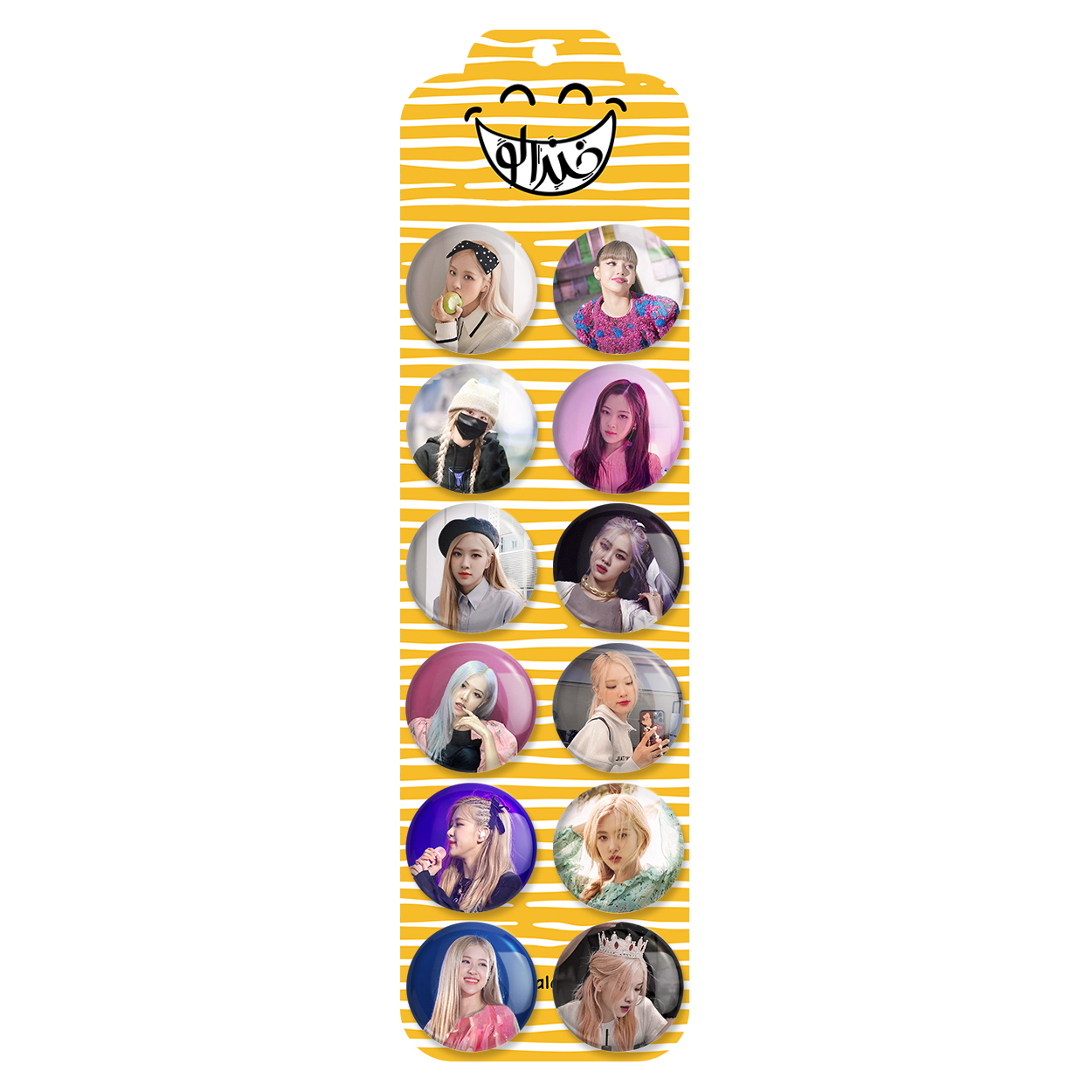 پک 12 عددی پیکسل خندالو طرح رزی بلک پینک Black pink با روکش سلفون حرارتی براق ضدخش و قطعه پشتی رنگی تولید شده است. قطعات پشتی از میان 6 رنگ سفید، مشکی، صورتی، زرد، آبی و قرمز که با توجه به نوع و رنگبندی طرح روی پیکسل انتخاب شده اند تولید می شود و در هر بسته بندی مطابق عکس محصول می باشد. قطعات پلاستیکی پشت پیکسل با سوزن یک تکه ثابت و بدون لغزش و جا به جایی، ایستایی بسیار بهتری نسبت به پشتی فلزی پیکسل دارند که این مهم در تولید این محصول نیز رعایت شده است. چاپ پیکسل طرح رزی بلک پینک Black pink بسته ۱۲ عددی نیز با دستگاه های استاندارد و با بهترین سطح کیفی صورت گرفته و طرح با شفافیتی مثال زدنی و با سلفونی بدون شکست نور بر روی پیکسل نقش بسته است.