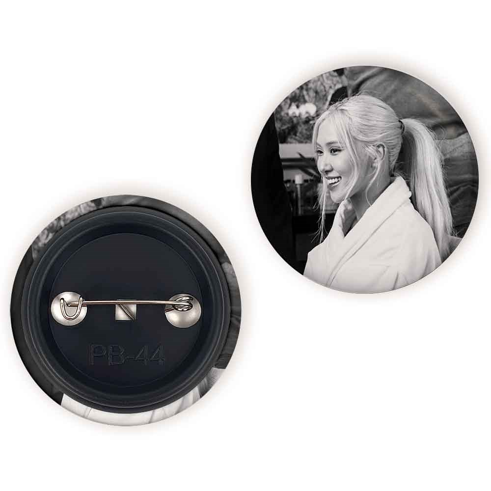 پیکسل 44 میلی متری رزی گروه بلک پینک Black Pink خندالو با روکش سلفون حرارتی مات مخملی ضدخش و قطعه پشتی رنگی تولید شده است.پلاستیکی پشت پیکسل با سوزن یک تکه ثابت و بدون لغزش و جا به جایی، ایستایی بسیار بهتری نسبت به پشتی فلزی پیکسل دارند که این مهم در تولید این محصول نیز رعایت شده است.