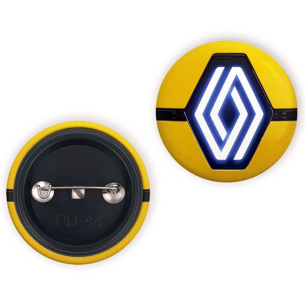 پیکسل 44 میلی متری رنو Renault خندالو با روکش سلفون حرارتی مات مخملی ضدخش و قطعه پشتی رنگی تولید شده است.پلاستیکی پشت پیکسل با سوزن یک تکه ثابت و بدون لغزش و جا به جایی، ایستایی بسیار بهتری نسبت به پشتی فلزی پیکسل دارند که این مهم در تولید این محصول نیز رعایت شده است.