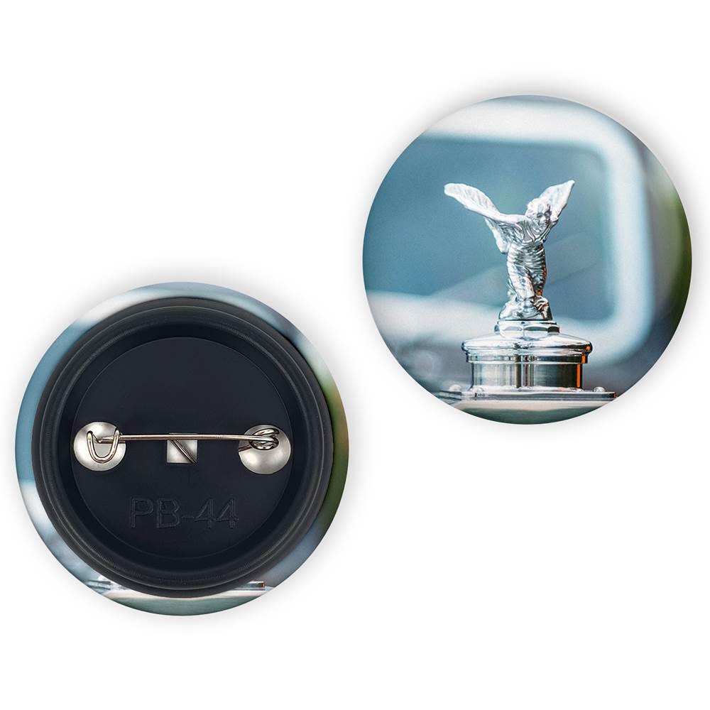 پیکسل 44 میلی متری رولزرویس Rolls Royceخندالو با روکش سلفون حرارتی مات مخملی ضدخش و قطعه پشتی رنگی تولید شده است. قطعات پلاستیکی پشت پیکسل با سوزن یک تکه ثابت و بدون لغزش و جا به جایی، ایستایی بسیار بهتری نسبت به پشتی فلزی پیکسل دارند که این مهم در تولید این محصول نیز رعایت شده است.