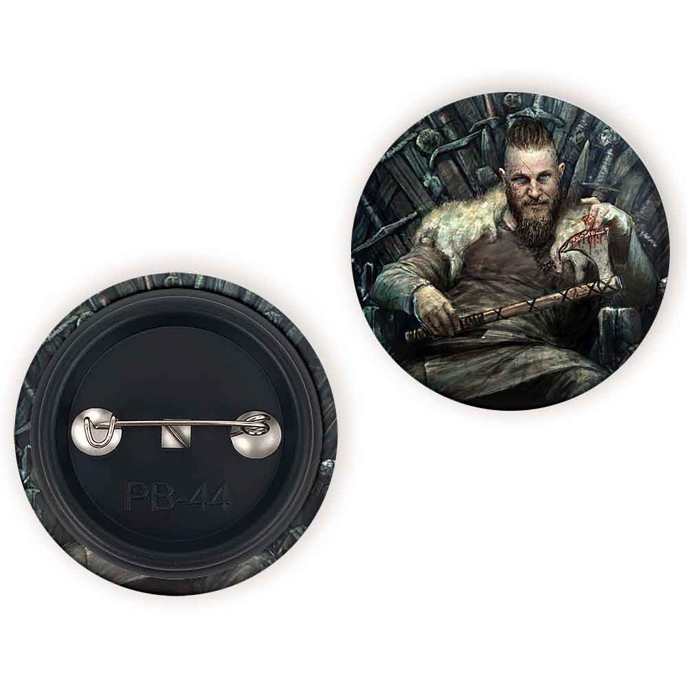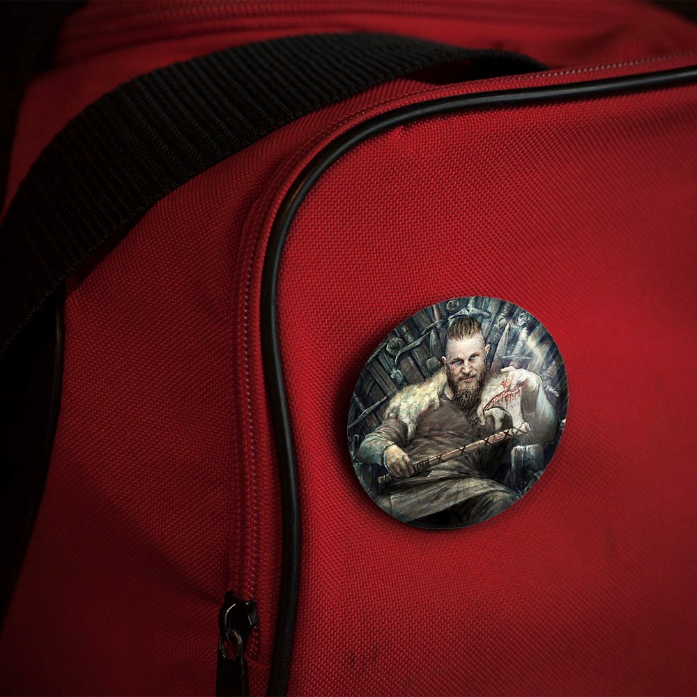 پیکسل 44 میلی متری رگنار سریال وایکینگ ها Vikings خندالو با روکش سلفون حرارتی مات مخملی ضدخش و قطعه پشتی رنگی تولید شده است.پلاستیکی پشت پیکسل با سوزن یک تکه ثابت و بدون لغزش و جا به جایی، ایستایی بسیار بهتری نسبت به پشتی فلزی پیکسل دارند که این مهم در تولید این محصول نیز رعایت شده است.