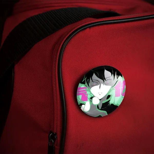 پیکسل 44 میلی متری ریتسو انیمه موب سایکو Mob Psycho 100 خندالو با روکش سلفون حرارتی مات مخملی ضدخش و قطعه پشتی رنگی تولید شده است.پلاستیکی پشت پیکسل با سوزن یک تکه ثابت و بدون لغزش و جا به جایی، ایستایی بسیار بهتری نسبت به پشتی فلزی پیکسل دارند که این مهم در تولید این محصول نیز رعایت شده است.