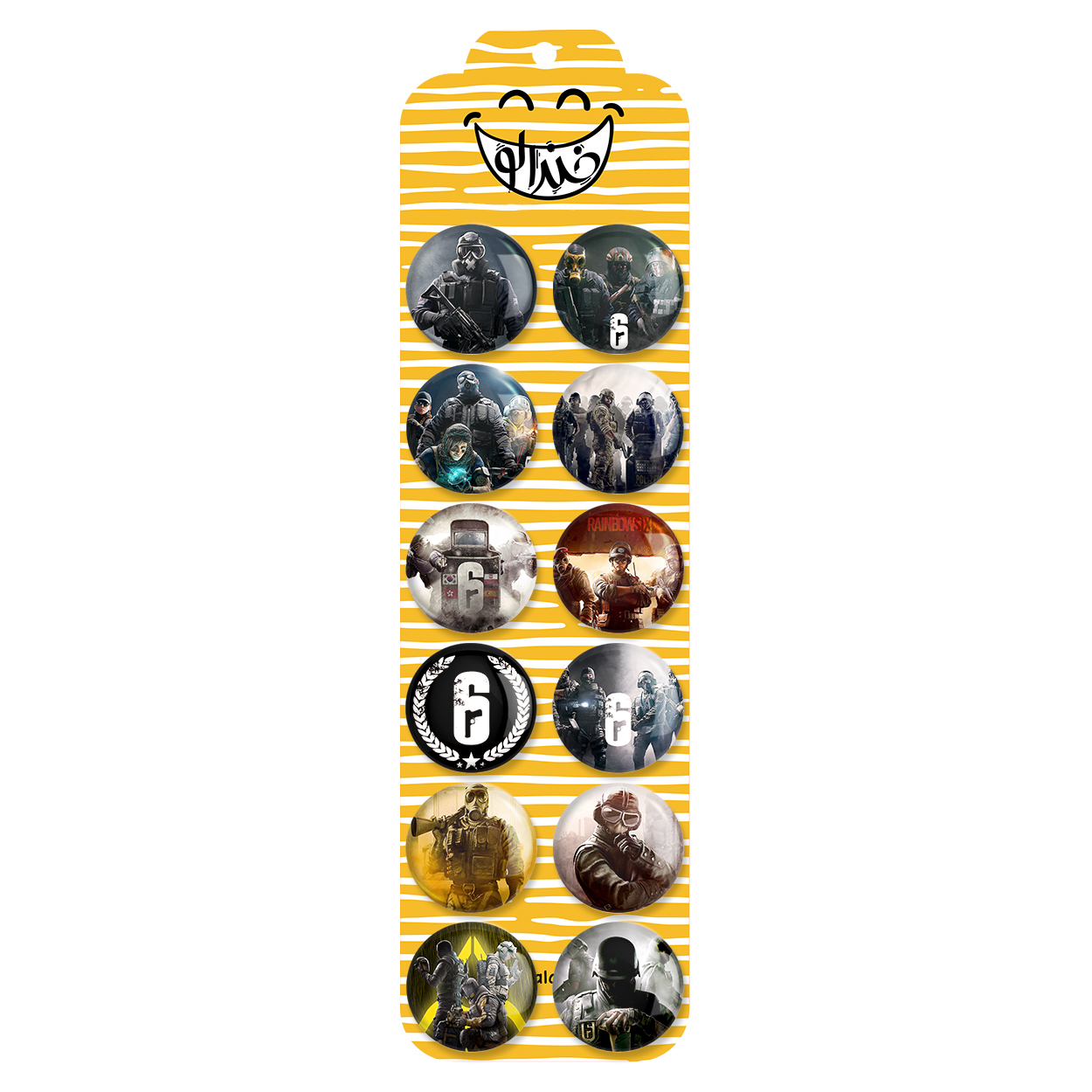 پک 12 عددی پیکسل خندالو طرح رینبوسیکس (Rainbow Six) با روکش سلفون حرارتی براق ضدخش و قطعه پشتی رنگی تولید شده است. قطعات پشتی از میان 6 رنگ سفید، مشکی، صورتی، زرد، آبی و قرمز که با توجه به نوع و رنگبندی طرح روی پیکسل انتخاب شده اند تولید می شود و در هر بسته بندی مطابق عکس محصول می باشد. قطعات پلاستیکی پشت پیکسل با سوزن یک تکه ثابت و بدون لغزش و جا به جایی، ایستایی بسیار بهتری نسبت به پشتی فلزی پیکسل دارند که این مهم در تولید این محصول نیز رعایت شده است. چاپ پیکسل طرح رینبوسیکس (Rainbow Six) بسته ۱۲ عددی نیز با دستگاه های استاندارد و با بهترین سطح کیفی صورت گرفته و طرح با شفافیتی مثال زدنی و با سلفونی بدون شکست نور بر روی پیکسل نقش بسته است.
