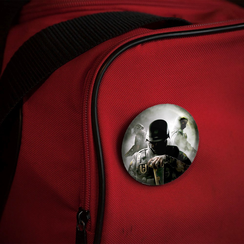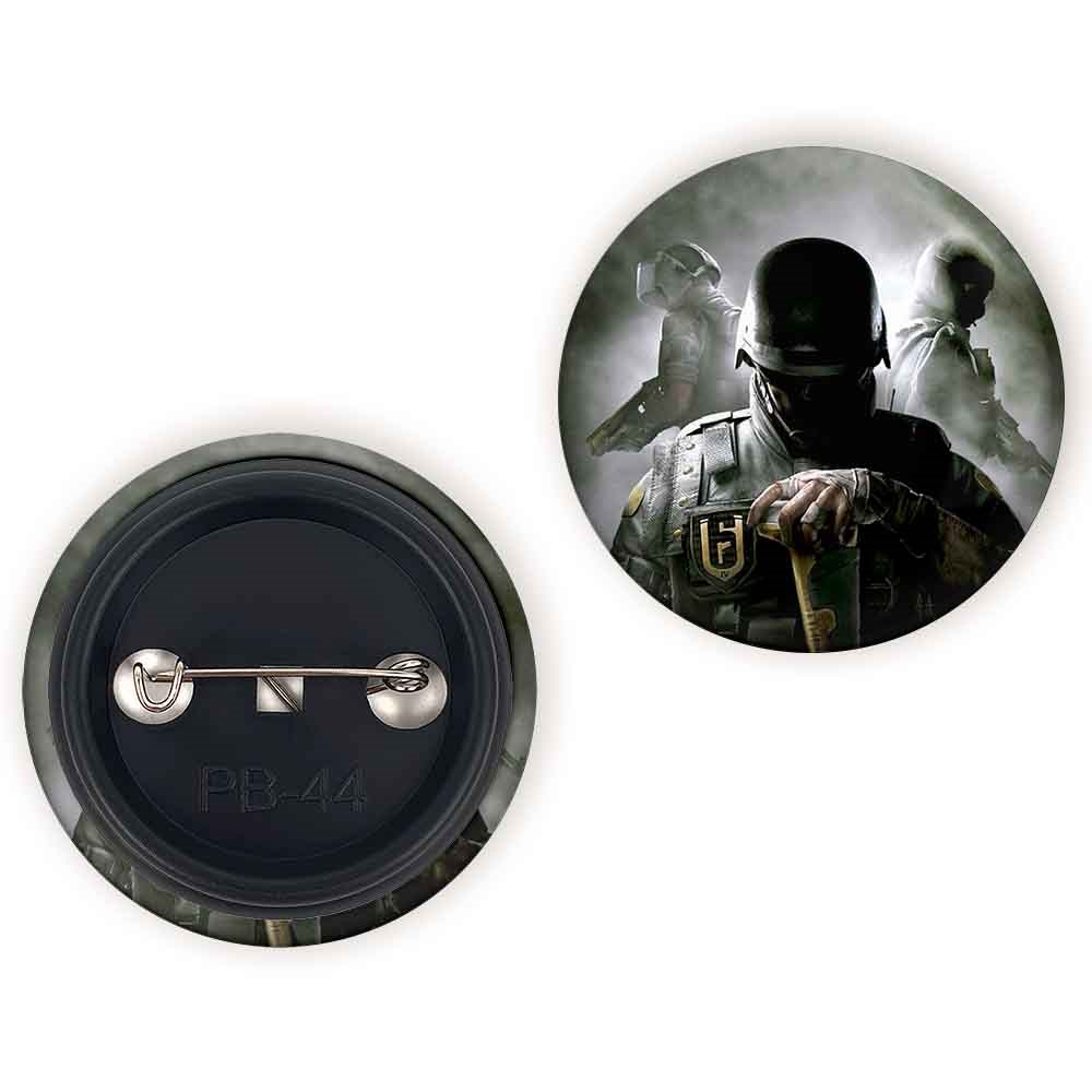 پیکسل 44 میلی متری رینبو سیکس Rainbow Six خندالو با روکش سلفون حرارتی مات مخملی ضدخش و قطعه پشتی رنگی تولید شده است.پلاستیکی پشت پیکسل با سوزن یک تکه ثابت و بدون لغزش و جا به جایی، ایستایی بسیار بهتری نسبت به پشتی فلزی پیکسل دارند که این مهم در تولید این محصول نیز رعایت شده است.