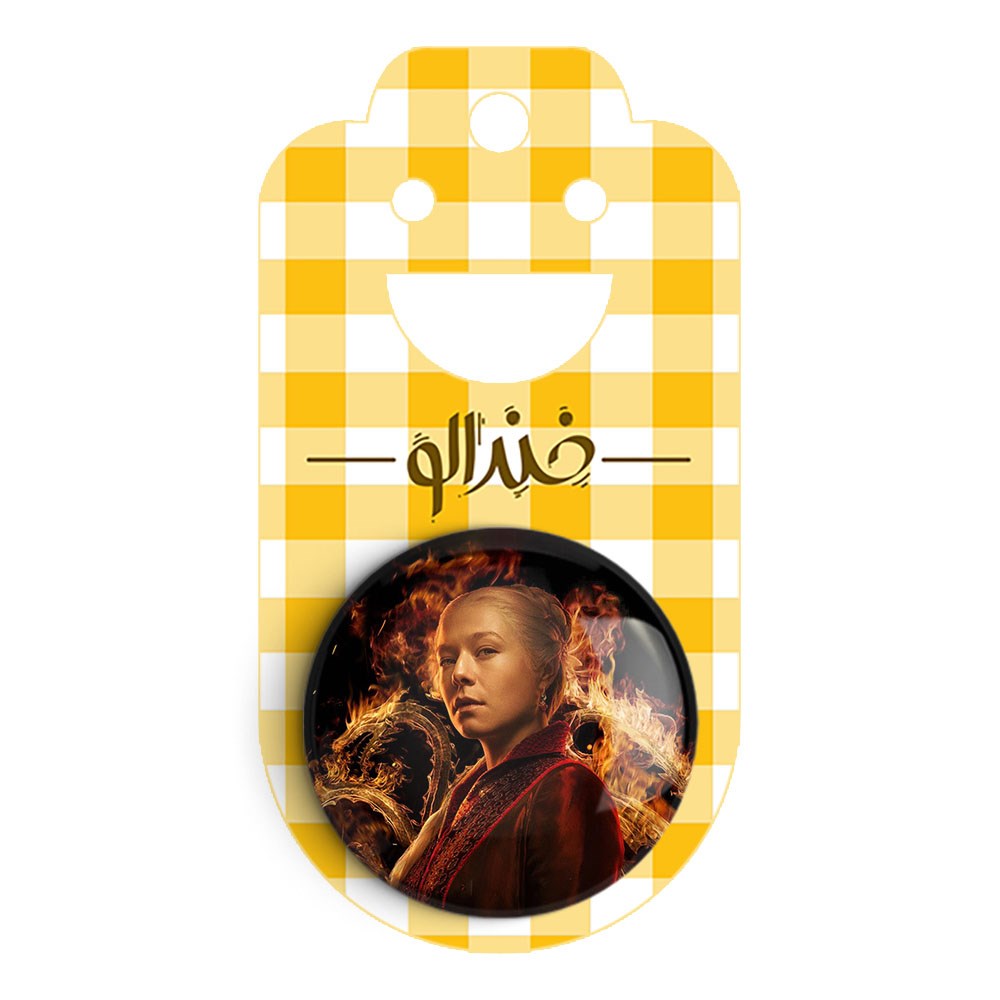 پیکسل 44 میلی متری رینیرا سریال خاندان اژدهایان House of dragon خندالو با روکش سلفون حرارتی مات مخملی ضدخش و قطعه پشتی رنگی تولید شده است.پلاستیکی پشت پیکسل با سوزن یک تکه ثابت و بدون لغزش و جا به جایی، ایستایی بسیار بهتری نسبت به پشتی فلزی پیکسل دارند که این مهم در تولید این محصول نیز رعایت شده است.