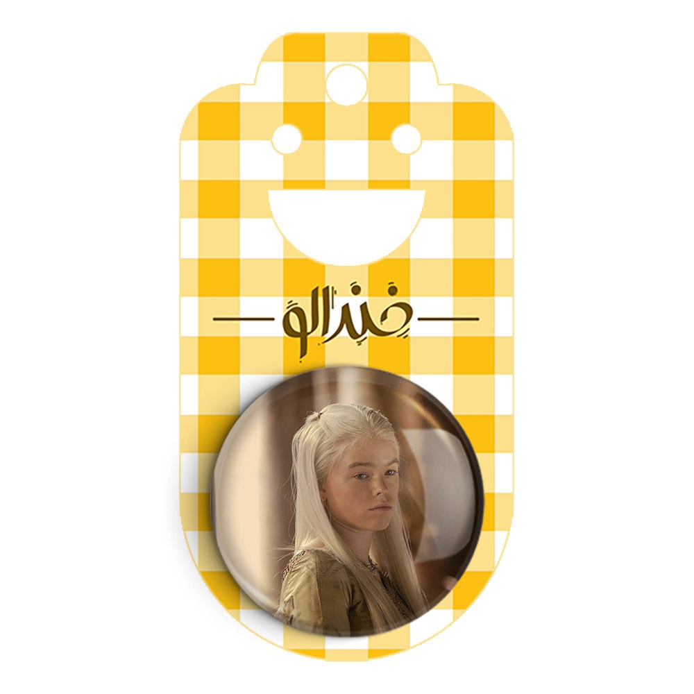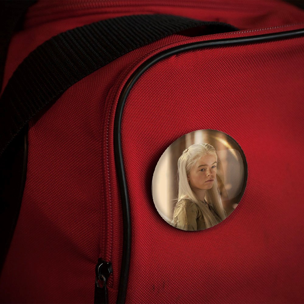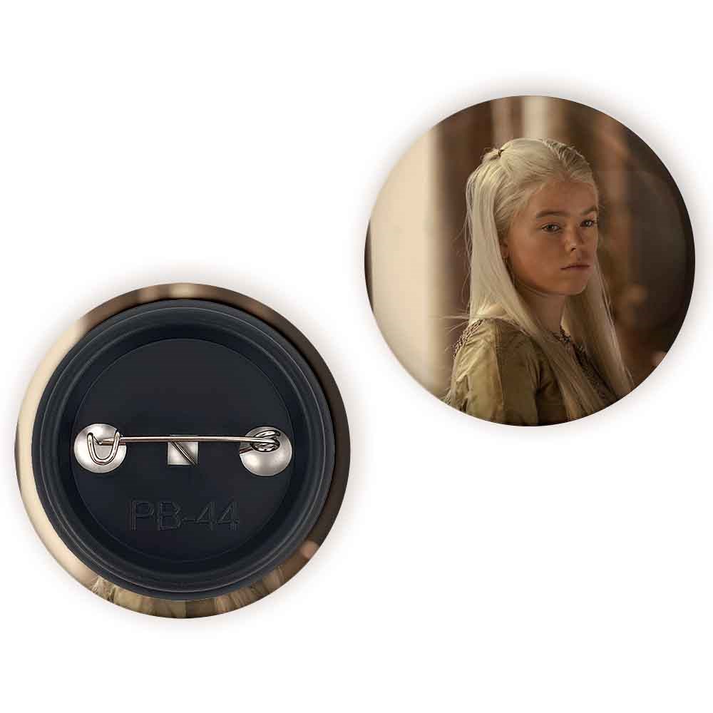 پیکسل 44 میلی متری رینیرا سریال خاندان اژدهایان House of dragon خندالو با روکش سلفون حرارتی مات مخملی ضدخش و قطعه پشتی رنگی تولید شده است.پلاستیکی پشت پیکسل با سوزن یک تکه ثابت و بدون لغزش و جا به جایی، ایستایی بسیار بهتری نسبت به پشتی فلزی پیکسل دارند که این مهم در تولید این محصول نیز رعایت شده است.