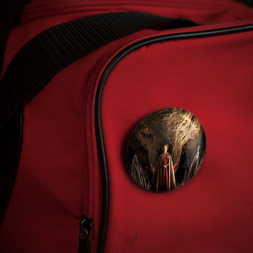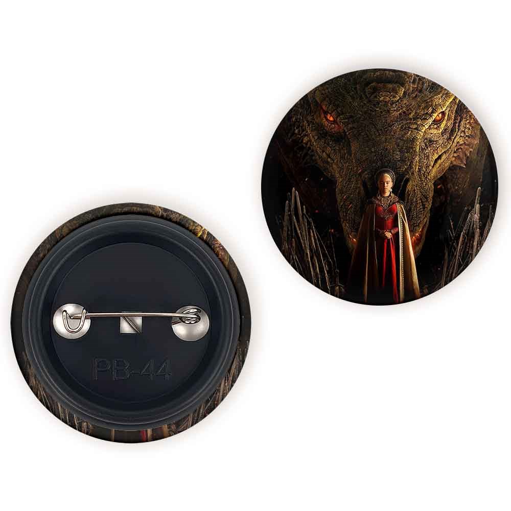 پیکسل 44 میلی متری رینیرا سریال خاندان اژدهایان House of dragon خندالو با روکش سلفون حرارتی مات مخملی ضدخش و قطعه پشتی رنگی تولید شده است.پلاستیکی پشت پیکسل با سوزن یک تکه ثابت و بدون لغزش و جا به جایی، ایستایی بسیار بهتری نسبت به پشتی فلزی پیکسل دارند که این مهم در تولید این محصول نیز رعایت شده است.