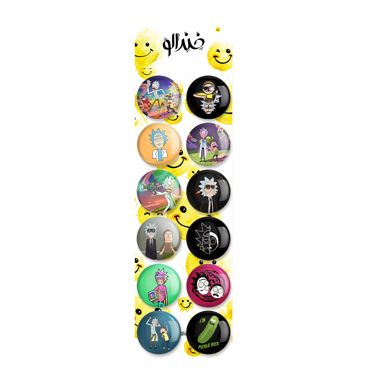 پک 12 عددی پیکسل خندالو طرح ریک و مورتی (Rick and Morty) با روکش سلفون حرارتی براق ضدخش و قطعه پشتی رنگی تولید شده است. قطعات پشتی از میان 6 رنگ سفید، مشکی، صورتی، زرد، آبی و قرمز که با توجه به نوع و رنگبندی طرح روی پیکسل انتخاب شده اند تولید می شود و در هر بسته بندی مطابق عکس محصول می باشد. قطعات پلاستیکی پشت پیکسل با سوزن یک تکه ثابت و بدون لغزش و جا به جایی، ایستایی بسیار بهتری نسبت به پشتی فلزی پیکسل دارند که این مهم در تولید این محصول نیز رعایت شده است. چاپ پیکسل طرح ریک و مورتی (Rick and Morty) بسته ۱۲ عددی نیز با دستگاه های استاندارد و با بهترین سطح کیفی صورت گرفته و طرح با شفافیتی مثال زدنی و با سلفونی بدون شکست نور بر روی پیکسل نقش بسته است.