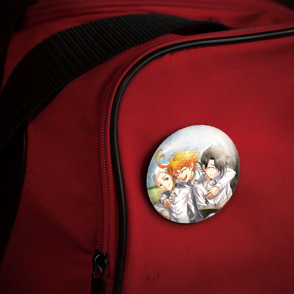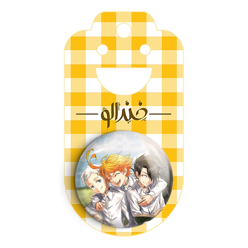 پیکسل 44 میلی متری ری و اما و نورمن انیمه ناکجاآباد موعود خندالو با روکش سلفون حرارتی مات مخملی ضدخش و قطعه پشتی رنگی تولید شده است.پلاستیکی پشت پیکسل با سوزن یک تکه ثابت و بدون لغزش و جا به جایی، ایستایی بسیار بهتری نسبت به پشتی فلزی پیکسل دارند که این مهم در تولید این محصول نیز رعایت شده است.