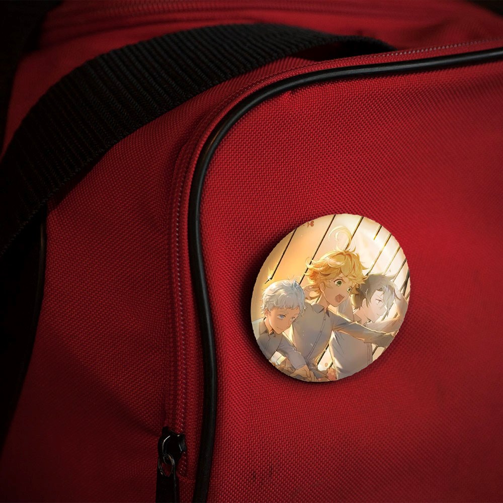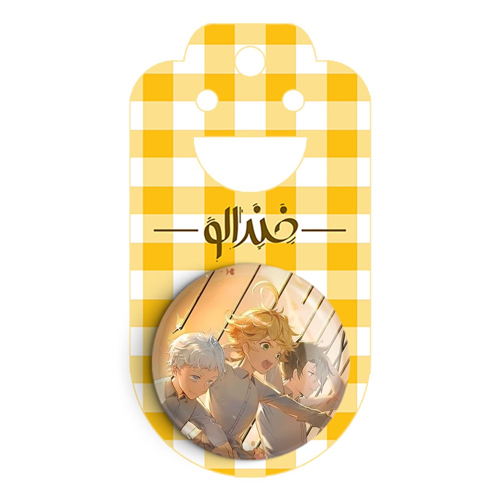 پیکسل 44 میلی متری ری و اما و نورمن انیمه ناکجاآباد موعود خندالو با روکش سلفون حرارتی مات مخملی ضدخش و قطعه پشتی رنگی تولید شده است.پلاستیکی پشت پیکسل با سوزن یک تکه ثابت و بدون لغزش و جا به جایی، ایستایی بسیار بهتری نسبت به پشتی فلزی پیکسل دارند که این مهم در تولید این محصول نیز رعایت شده است.