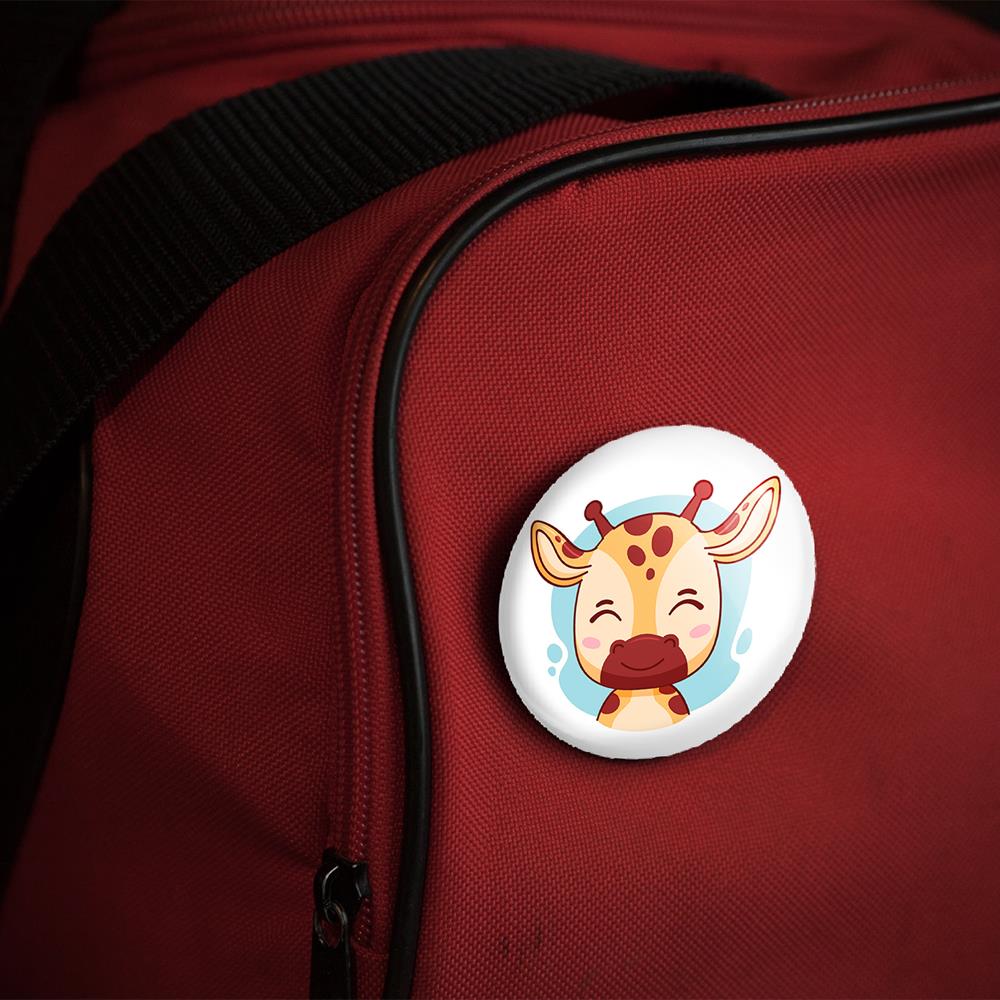 پیکسل 44 میلی متری زرافه حیوانات بامزهخندالو با روکش سلفون حرارتی مات مخملی ضدخش و قطعه پشتی رنگی تولید شده است. قطعات پلاستیکی پشت پیکسل با سوزن یک تکه ثابت و بدون لغزش و جا به جایی، ایستایی بسیار بهتری نسبت به پشتی فلزی پیکسل دارند که این مهم در تولید این محصول نیز رعایت شده است.