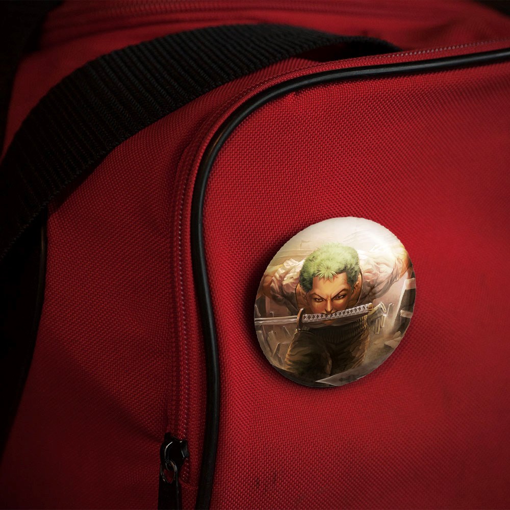 پیکسل 44 میلی متری زورو انیمه وان پیس One Piece خندالو با روکش سلفون حرارتی مات مخملی ضدخش و قطعه پشتی رنگی تولید شده است.پلاستیکی پشت پیکسل با سوزن یک تکه ثابت و بدون لغزش و جا به جایی، ایستایی بسیار بهتری نسبت به پشتی فلزی پیکسل دارند که این مهم در تولید این محصول نیز رعایت شده است.
