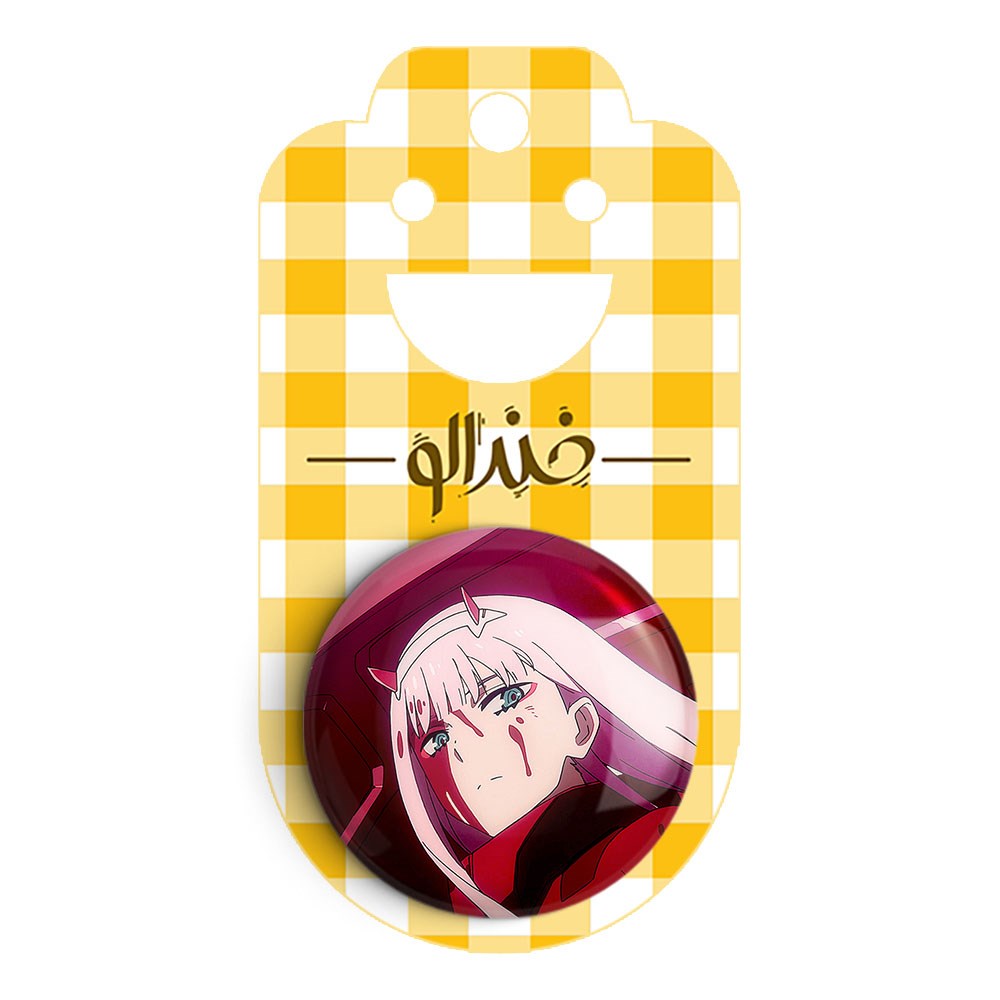 پیکسل 44 میلی متری زیروتو انیمه دارلینگ در فرنکس خندالو با روکش سلفون حرارتی مات مخملی ضدخش و قطعه پشتی رنگی تولید شده است.پلاستیکی پشت پیکسل با سوزن یک تکه ثابت و بدون لغزش و جا به جایی، ایستایی بسیار بهتری نسبت به پشتی فلزی پیکسل دارند که این مهم در تولید این محصول نیز رعایت شده است.
