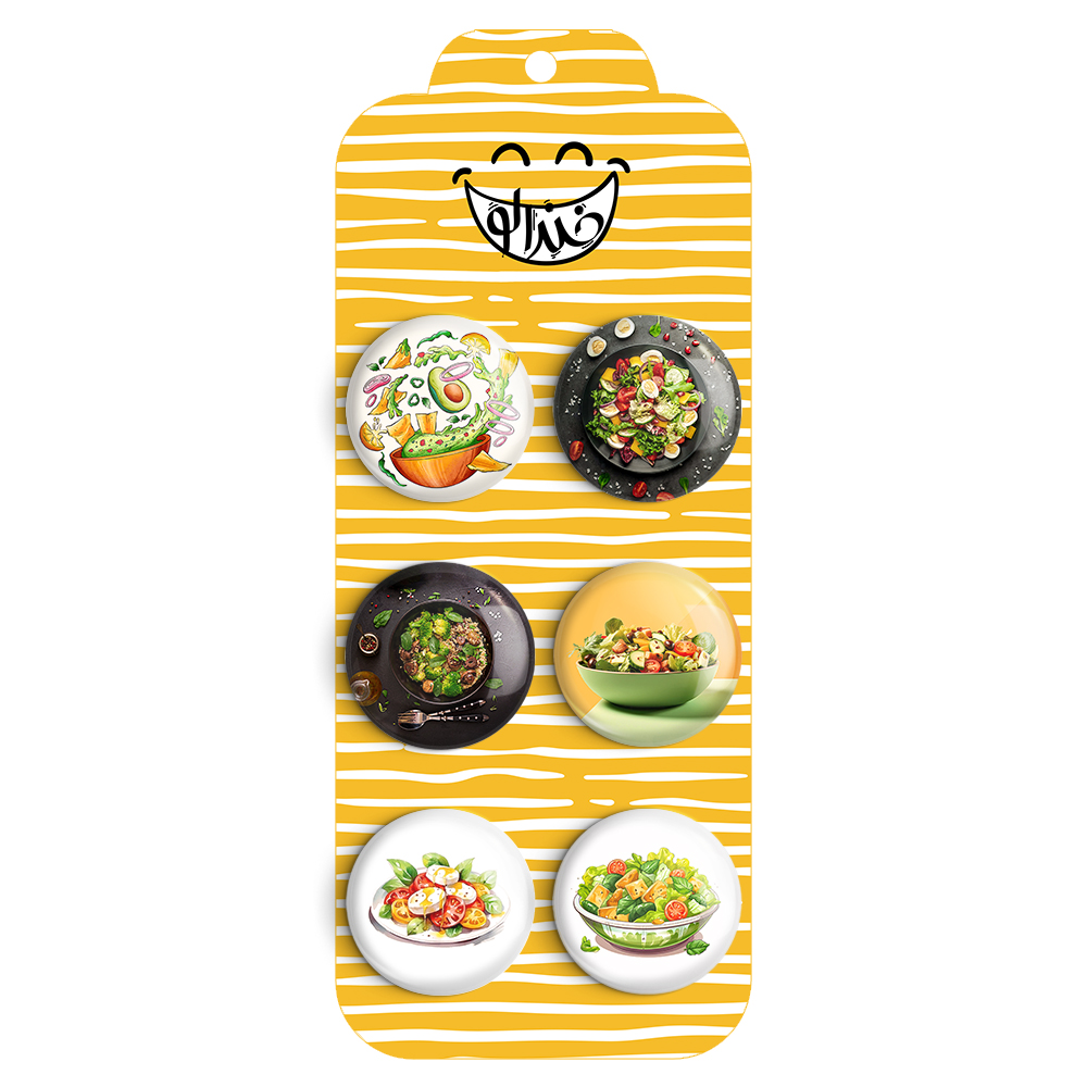 مجموعه 6 عددی پیکسل خندالو طرح سالاد (Salad) با روکش سلفون حرارتی براق ضدخش و قطعه پشتی رنگی تولید شده است. قطعات پشتی از میان 6 رنگ سفید، مشکی، صورتی، زرد، آبی و قرمز که با توجه به نوع و رنگبندی طرح روی پیکسل انتخاب شده اند تولید می شود و در هر بسته بندی مطابق عکس محصول می باشد. قطعات پلاستیکی پشت پیکسل با سوزن یک تکه ثابت و بدون لغزش و جا به جایی، ایستایی بسیار بهتری نسبت به پشتی فلزی پیکسل دارند که این مهم در تولید این محصول نیز رعایت شده است. چاپ پیکسل نیز با دستگاه های استاندارد و با بهترین سطح کیفی صورت گرفته و طرح با شفافیتی مثال زدنی و با سلفونی بدون شکست نور بر روی پیکسل نقش بسته است. همچنین بسته بندی جذاب و مینیمال پیکسل ها، آنها را مناسب هدیه کرده است..