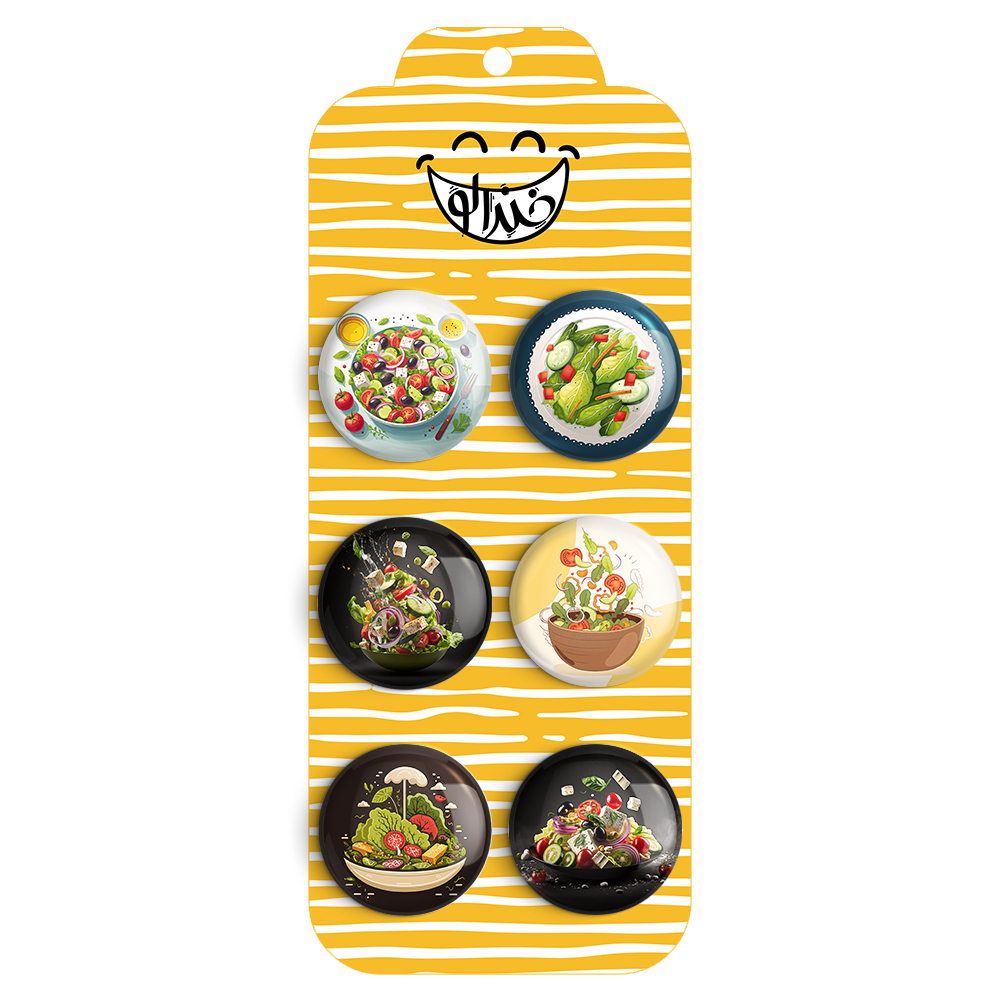 مجموعه 6 عددی پیکسل خندالو طرح سالاد (Salad) با روکش سلفون حرارتی براق ضدخش و قطعه پشتی رنگی تولید شده است. قطعات پشتی از میان 6 رنگ سفید، مشکی، صورتی، زرد، آبی و قرمز که با توجه به نوع و رنگبندی طرح روی پیکسل انتخاب شده اند تولید می شود و در هر بسته بندی مطابق عکس محصول می باشد. قطعات پلاستیکی پشت پیکسل با سوزن یک تکه ثابت و بدون لغزش و جا به جایی، ایستایی بسیار بهتری نسبت به پشتی فلزی پیکسل دارند که این مهم در تولید این محصول نیز رعایت شده است. چاپ پیکسل نیز با دستگاه های استاندارد و با بهترین سطح کیفی صورت گرفته و طرح با شفافیتی مثال زدنی و با سلفونی بدون شکست نور بر روی پیکسل نقش بسته است. همچنین بسته بندی جذاب و مینیمال پیکسل ها، آنها را مناسب هدیه کرده است..