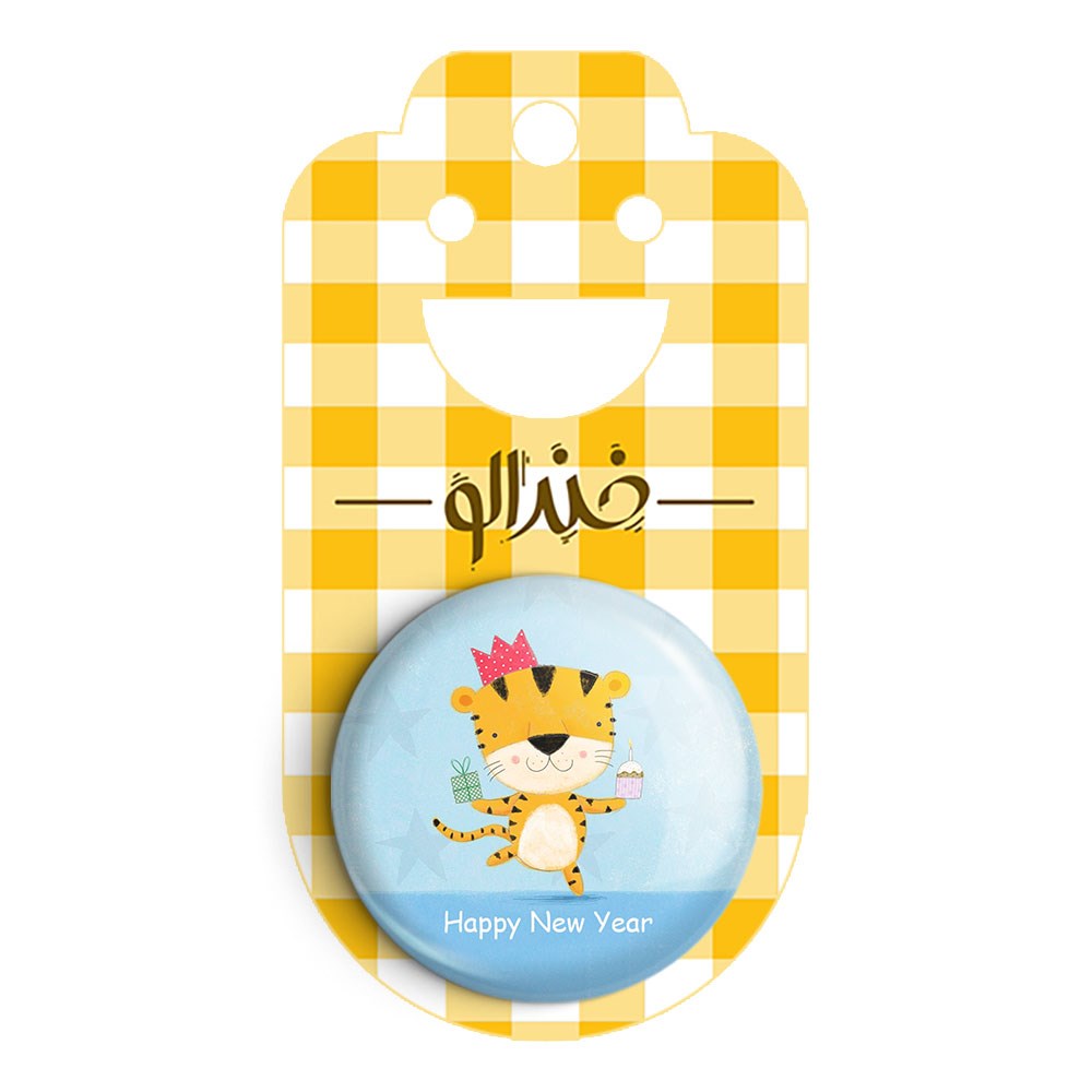 پیکسل 44 میلی متری سال ببر خندالو با روکش سلفون حرارتی مات مخملی ضدخش و قطعه پشتی رنگی تولید شده است.پلاستیکی پشت پیکسل با سوزن یک تکه ثابت و بدون لغزش و جا به جایی، ایستایی بسیار بهتری نسبت به پشتی فلزی پیکسل دارند که این مهم در تولید این محصول نیز رعایت شده است.