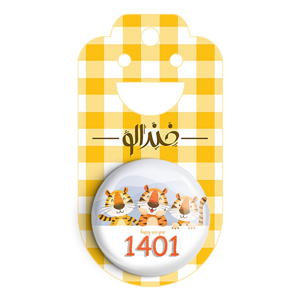 پیکسل 44 میلی متری سال ببر خندالو با روکش سلفون حرارتی مات مخملی ضدخش و قطعه پشتی رنگی تولید شده است.پلاستیکی پشت پیکسل با سوزن یک تکه ثابت و بدون لغزش و جا به جایی، ایستایی بسیار بهتری نسبت به پشتی فلزی پیکسل دارند که این مهم در تولید این محصول نیز رعایت شده است.
