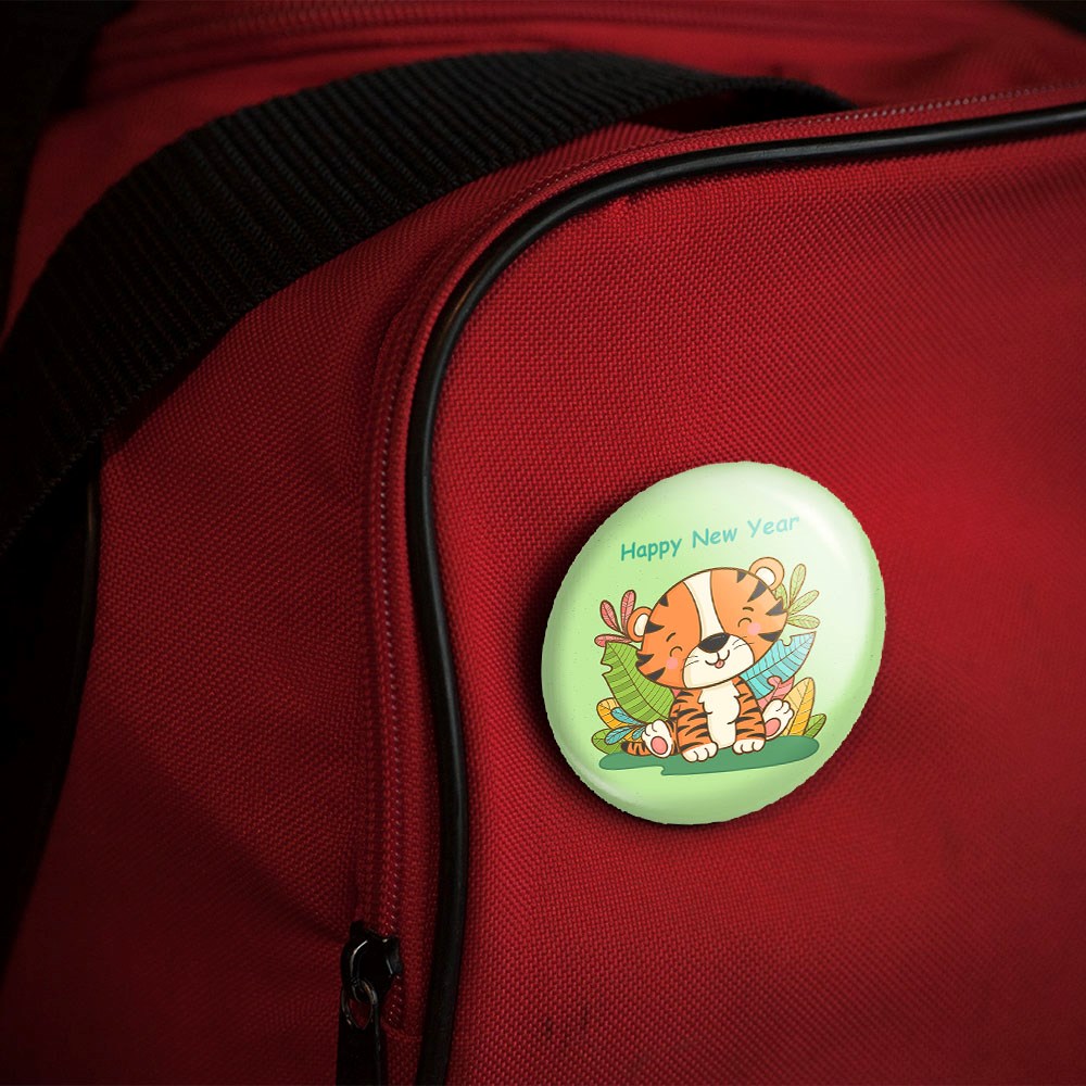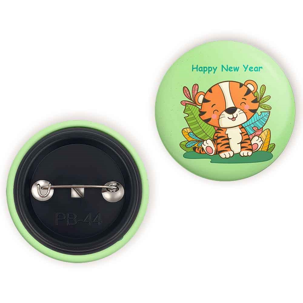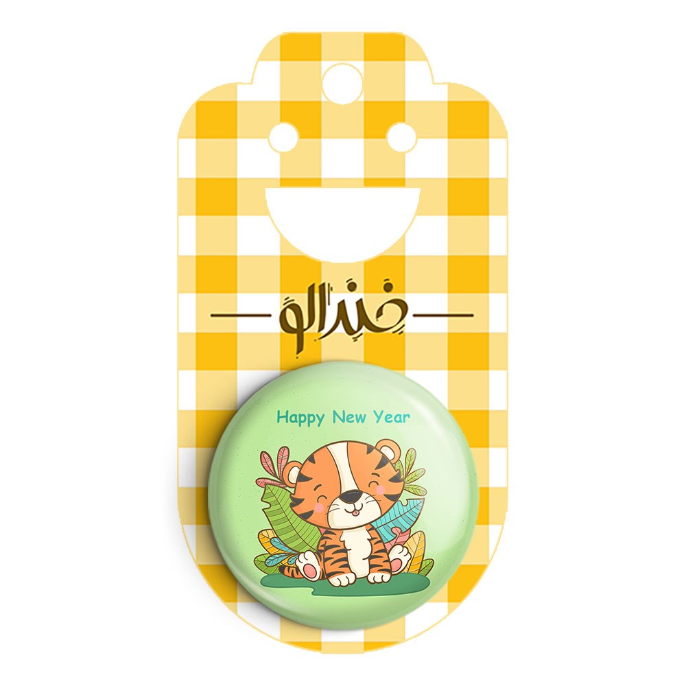 پیکسل 44 میلی متری سال ببر خندالو با روکش سلفون حرارتی مات مخملی ضدخش و قطعه پشتی رنگی تولید شده است.پلاستیکی پشت پیکسل با سوزن یک تکه ثابت و بدون لغزش و جا به جایی، ایستایی بسیار بهتری نسبت به پشتی فلزی پیکسل دارند که این مهم در تولید این محصول نیز رعایت شده است.