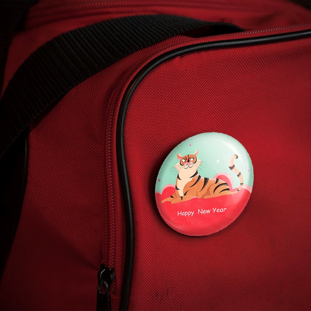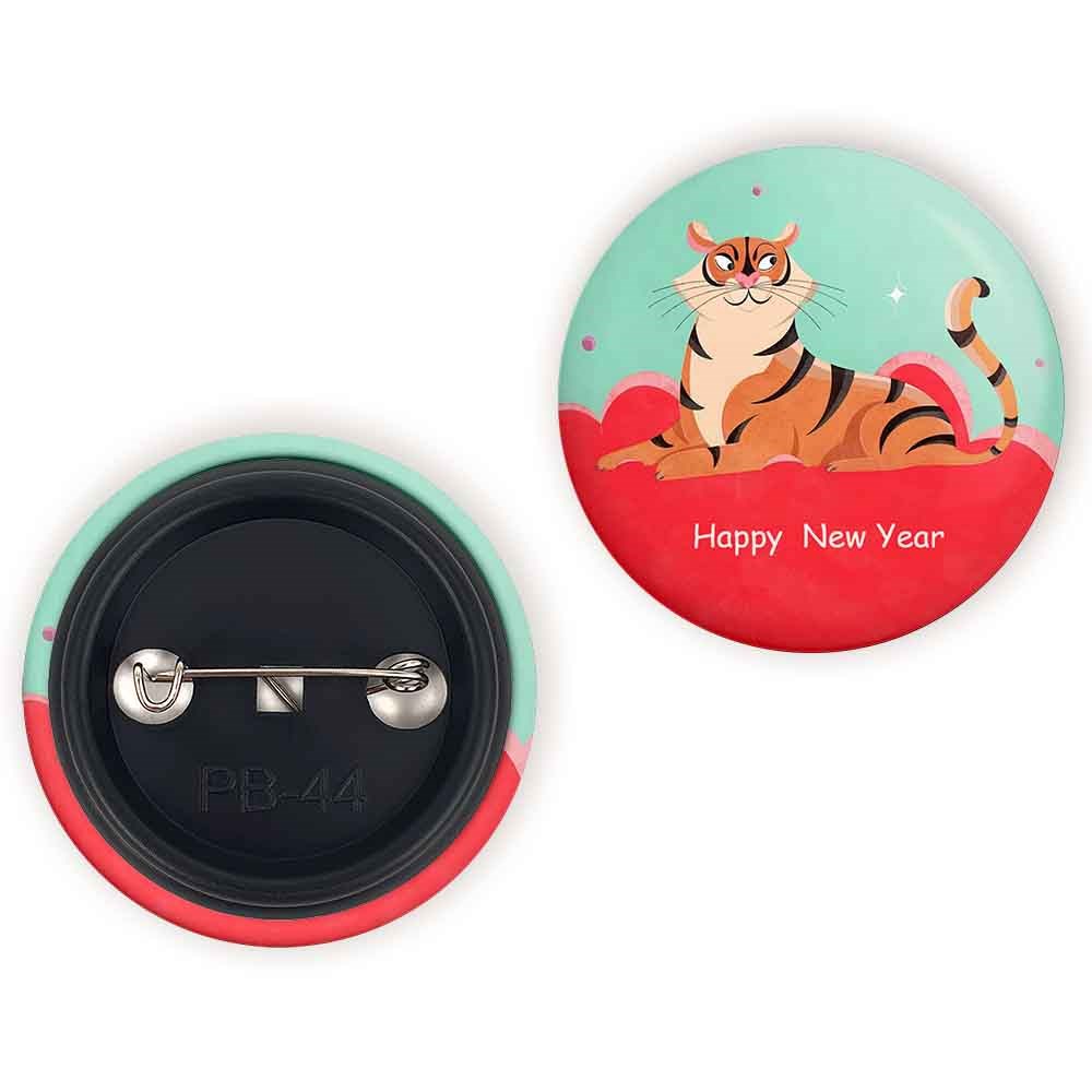 پیکسل 44 میلی متری سال ببر خندالو با روکش سلفون حرارتی مات مخملی ضدخش و قطعه پشتی رنگی تولید شده است.پلاستیکی پشت پیکسل با سوزن یک تکه ثابت و بدون لغزش و جا به جایی، ایستایی بسیار بهتری نسبت به پشتی فلزی پیکسل دارند که این مهم در تولید این محصول نیز رعایت شده است.