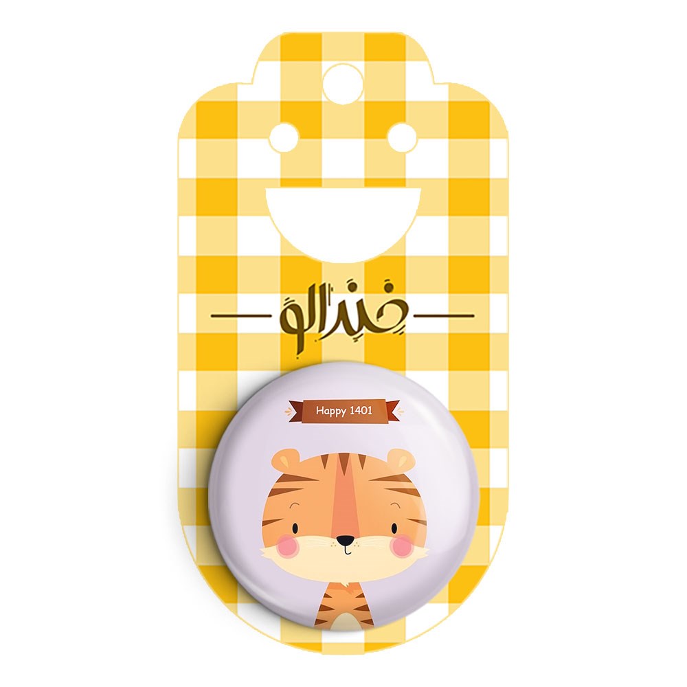 پیکسل 44 میلی متری سال ببر خندالو با روکش سلفون حرارتی مات مخملی ضدخش و قطعه پشتی رنگی تولید شده است.پلاستیکی پشت پیکسل با سوزن یک تکه ثابت و بدون لغزش و جا به جایی، ایستایی بسیار بهتری نسبت به پشتی فلزی پیکسل دارند که این مهم در تولید این محصول نیز رعایت شده است.