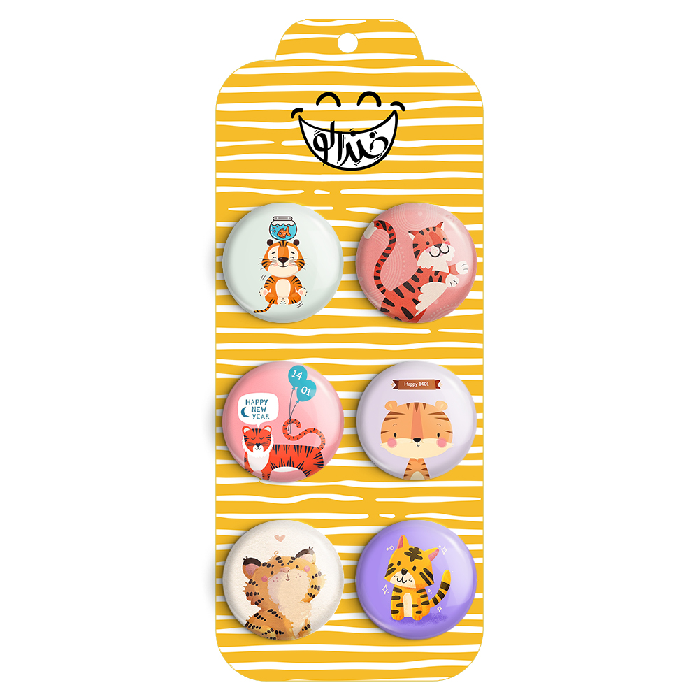مجموعه 6 عددی پیکسل خندالو طرح سال ببر با روکش سلفون حرارتی براق ضدخش و قطعه پشتی رنگی تولید شده است. قطعات پشتی از میان 6 رنگ سفید، مشکی، صورتی، زرد، آبی و قرمز که با توجه به نوع و رنگبندی طرح روی پیکسل انتخاب شده اند تولید می شود و در هر بسته بندی مطابق عکس محصول می باشد.