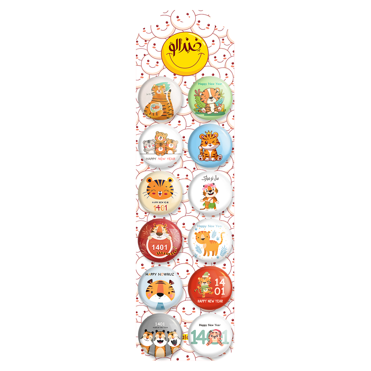 پک 12 عددی پیکسل خندالو طرح سال ببر با روکش سلفون حرارتی براق ضدخش و قطعه پشتی رنگی تولید شده است. قطعات پشتی از میان 6 رنگ سفید، مشکی، صورتی، زرد، آبی و قرمز که با توجه به نوع و رنگبندی طرح روی پیکسل انتخاب شده اند تولید می شود و در هر بسته بندی مطابق عکس محصول می باشد. قطعات پلاستیکی پشت پیکسل با سوزن یک تکه ثابت و بدون لغزش و جا به جایی، ایستایی بسیار بهتری نسبت به پشتی فلزی پیکسل دارند که این مهم در تولید این محصول نیز رعایت شده است. چاپ پیکسل طرح سال ببر بسته ۱۲ عددی نیز با دستگاه های استاندارد و با بهترین سطح کیفی صورت گرفته و طرح با شفافیتی مثال زدنی و با سلفونی بدون شکست نور بر روی پیکسل نقش بسته است.