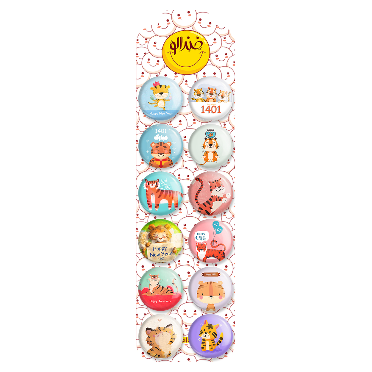 پک 12 عددی پیکسل خندالو طرح سال ببر با روکش سلفون حرارتی براق ضدخش و قطعه پشتی رنگی تولید شده است. قطعات پشتی از میان 6 رنگ سفید، مشکی، صورتی، زرد، آبی و قرمز که با توجه به نوع و رنگبندی طرح روی پیکسل انتخاب شده اند تولید می شود و در هر بسته بندی مطابق عکس محصول می باشد. قطعات پلاستیکی پشت پیکسل با سوزن یک تکه ثابت و بدون لغزش و جا به جایی، ایستایی بسیار بهتری نسبت به پشتی فلزی پیکسل دارند که این مهم در تولید این محصول نیز رعایت شده است.