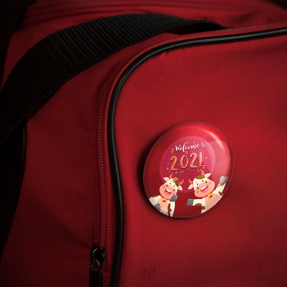 پیکسل 44 میلی متری سال گاو خندالو با روکش سلفون حرارتی مات مخملی ضدخش و قطعه پشتی رنگی تولید شده است.پلاستیکی پشت پیکسل با سوزن یک تکه ثابت و بدون لغزش و جا به جایی، ایستایی بسیار بهتری نسبت به پشتی فلزی پیکسل دارند که این مهم در تولید این محصول نیز رعایت شده است.