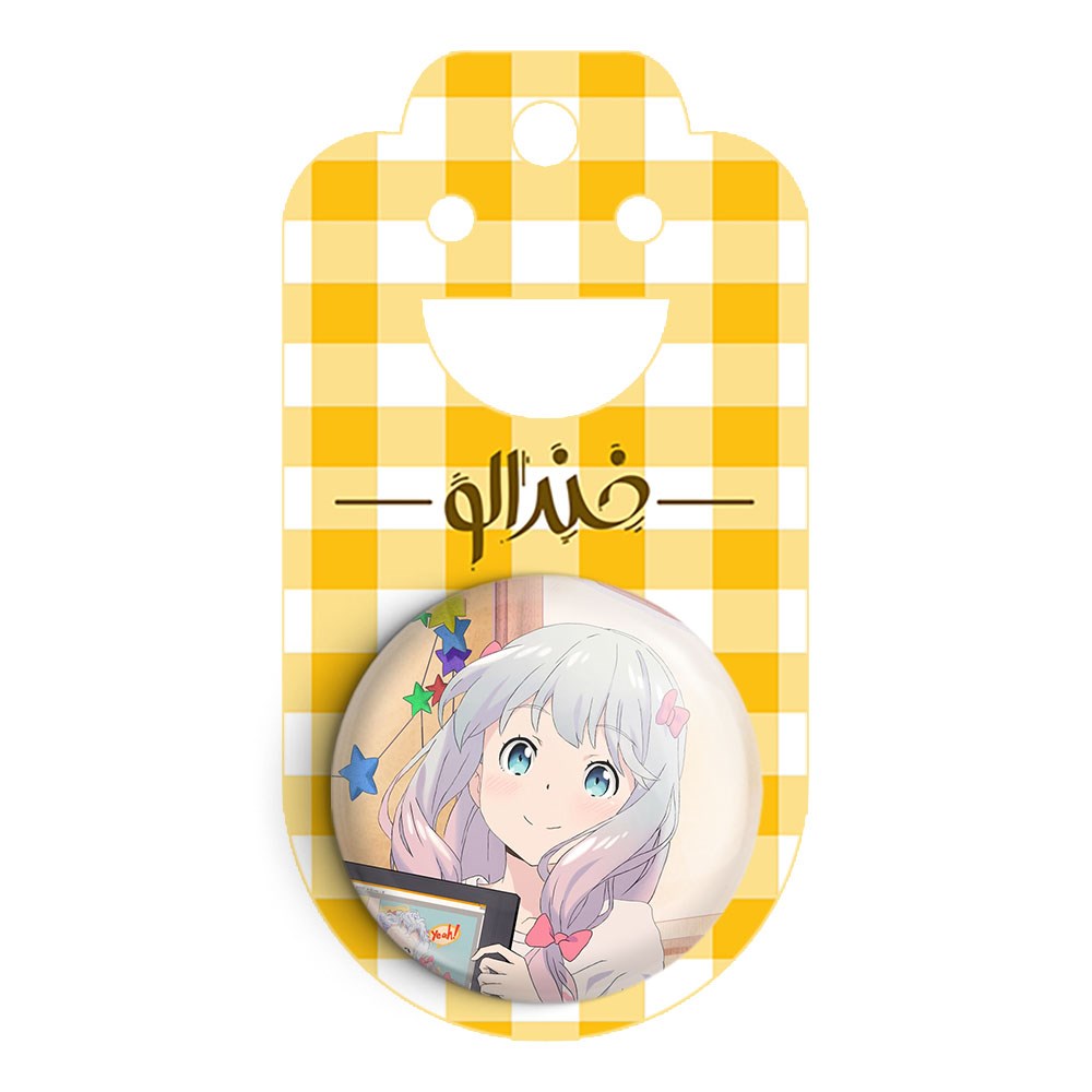 پیکسل 44 میلی متری ساگیری انیمه ارومانگا سنسی Eromanga Sensei خندالو با روکش سلفون حرارتی مات مخملی ضدخش و قطعه پشتی رنگی تولید شده است.پلاستیکی پشت پیکسل با سوزن یک تکه ثابت و بدون لغزش و جا به جایی، ایستایی بسیار بهتری نسبت به پشتی فلزی پیکسل دارند که این مهم در تولید این محصول نیز رعایت شده است.